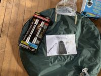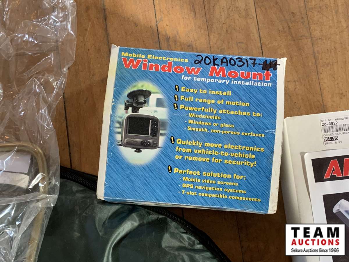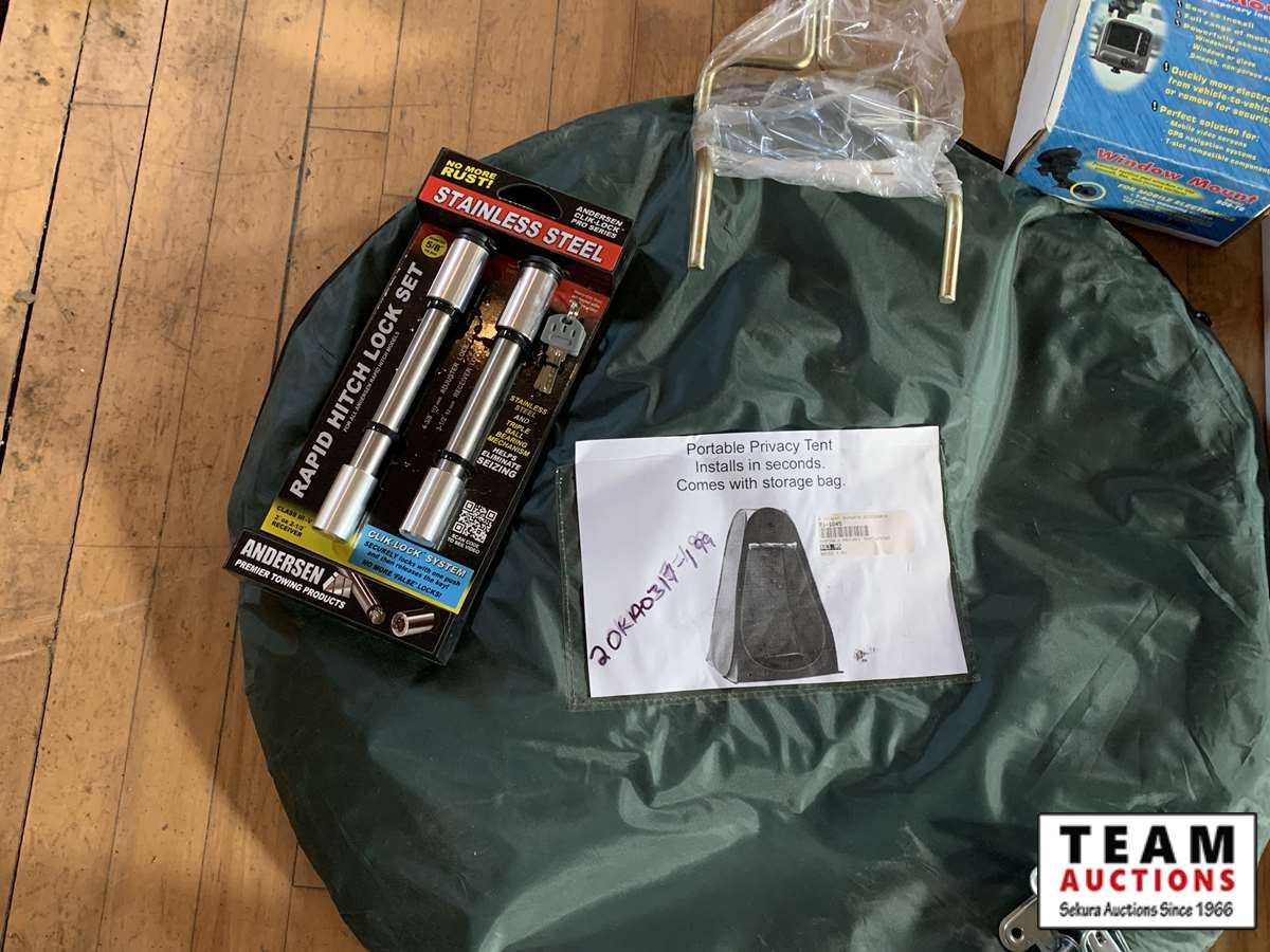 portable privacy tent, stainless steel rapid hitch lock, mobile window mount, 11-1/2 in. Curved handle, Dometic receiver, pedestal table leg