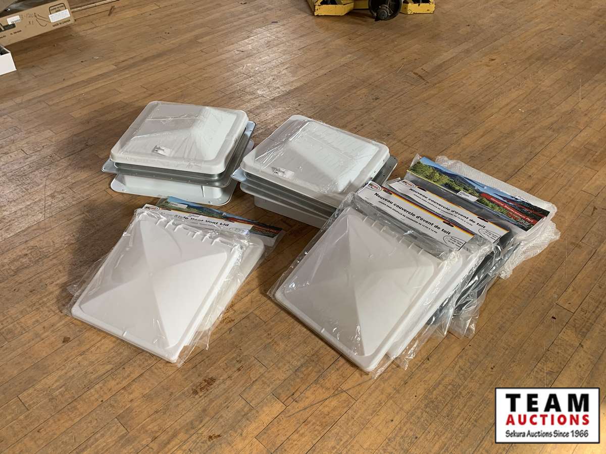 misc roof vents, (3) 14 in. x 14 in. Jensen without hinge pin style, (3) smoked Ventline vents, (1) white Ventline vent