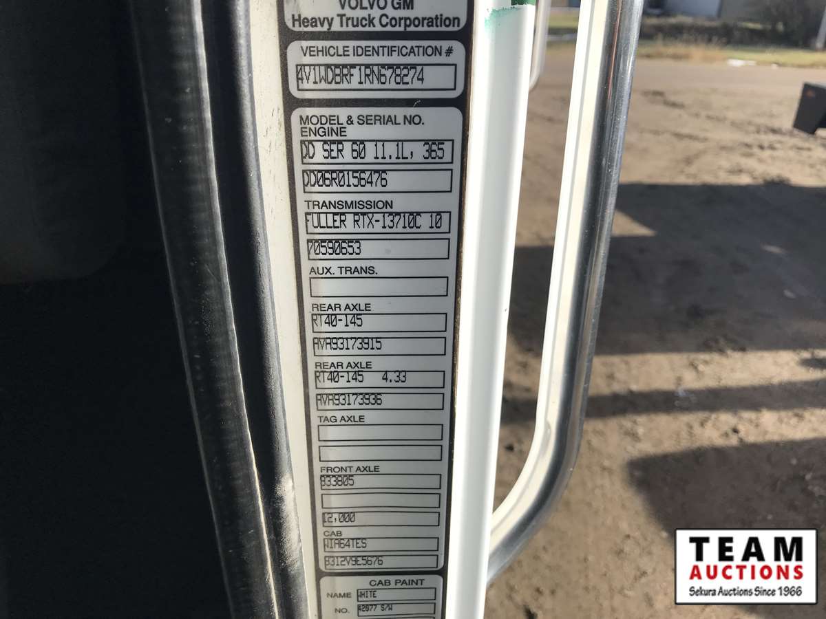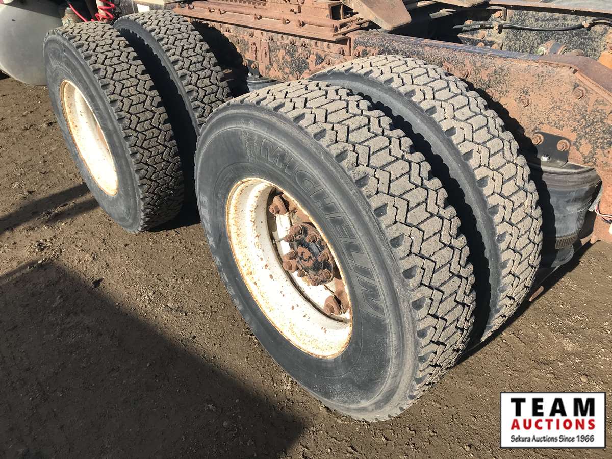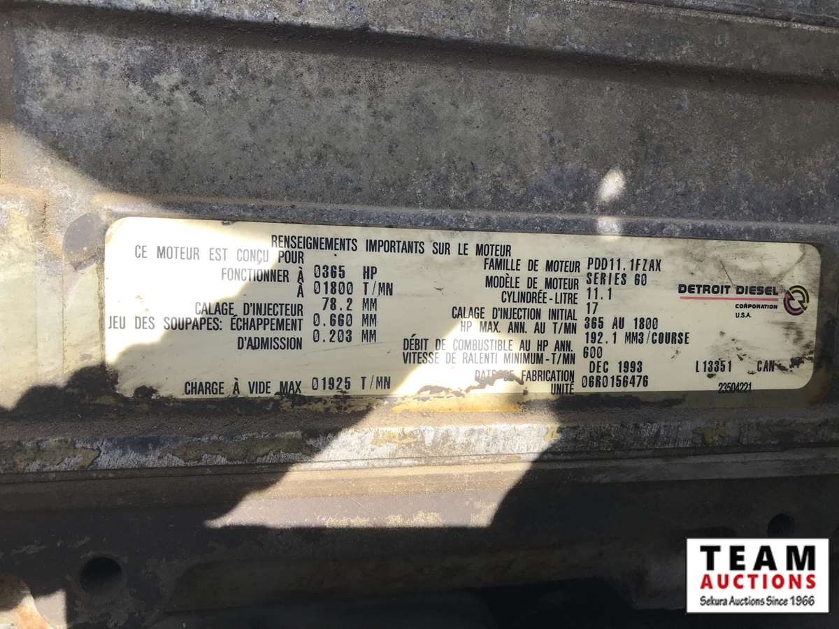 Detroit 60 series, 365 hp, 11.1 L, 6 cyl, eng brake, Eaton Fuller RTX13710C10, A/R susp, 12,000 lb frt, RT40145 rears, 4.33 ratio, 534,502 kms