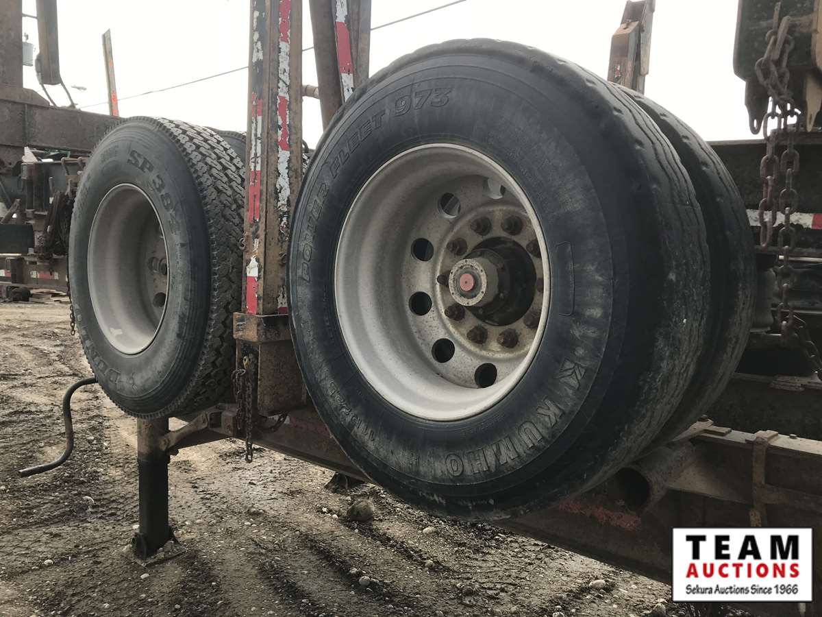 Ridewell A/R susp, (4) 9 ft 6 in. bunks, alum wheels, 11R22.5, BC CVIP EXPIRED 11/2019, sold with 2012 Castleton B Train Log Trailer Pup, s/n 2C9B3S60XCS133570, Ridewell A/R susp, (2) 9 ft 6 in. bunks, alum wheels, 11R22.5, BC CVIP EXPIRED 11/2019