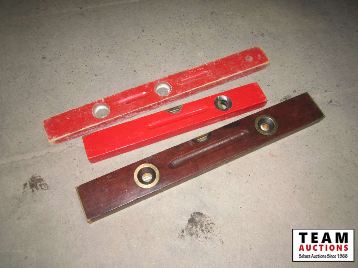 1301 (1) Wooden & Brass Level & (2) Wooden Levels
