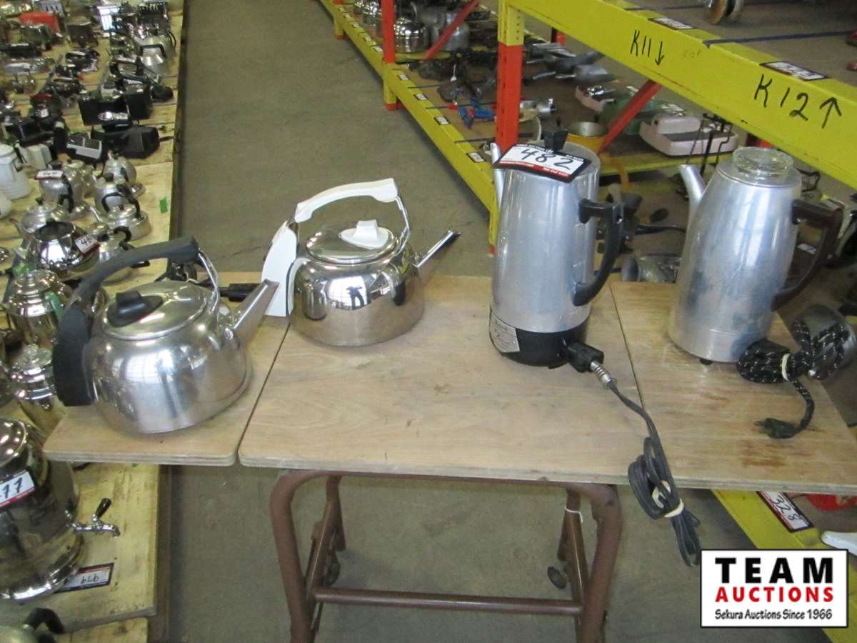 482 (2) Electric Kettles, (4) Electric Coffee Makers, Melitta Travel Coffee Maker