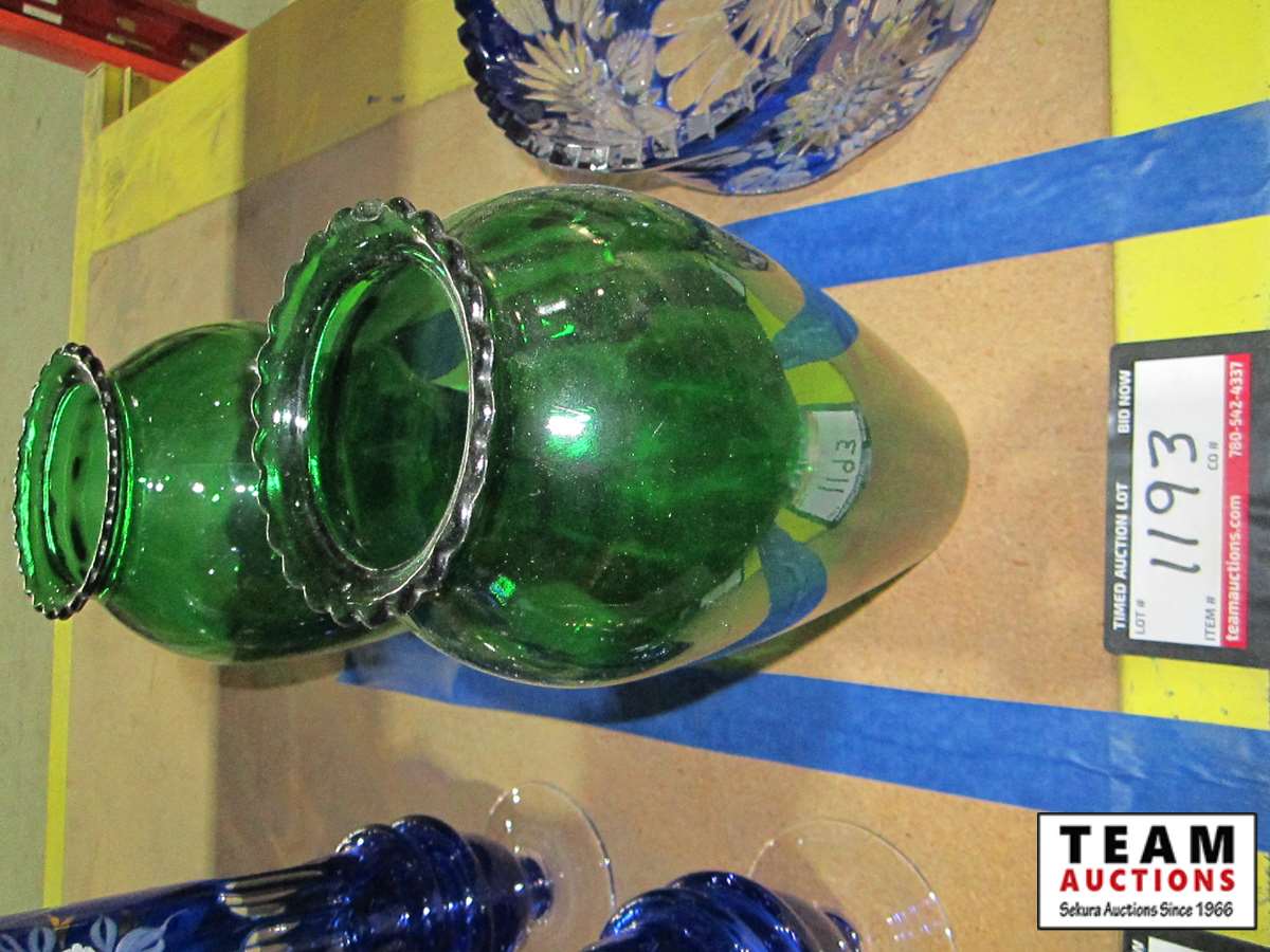 1193 (2) Green Glass Vases