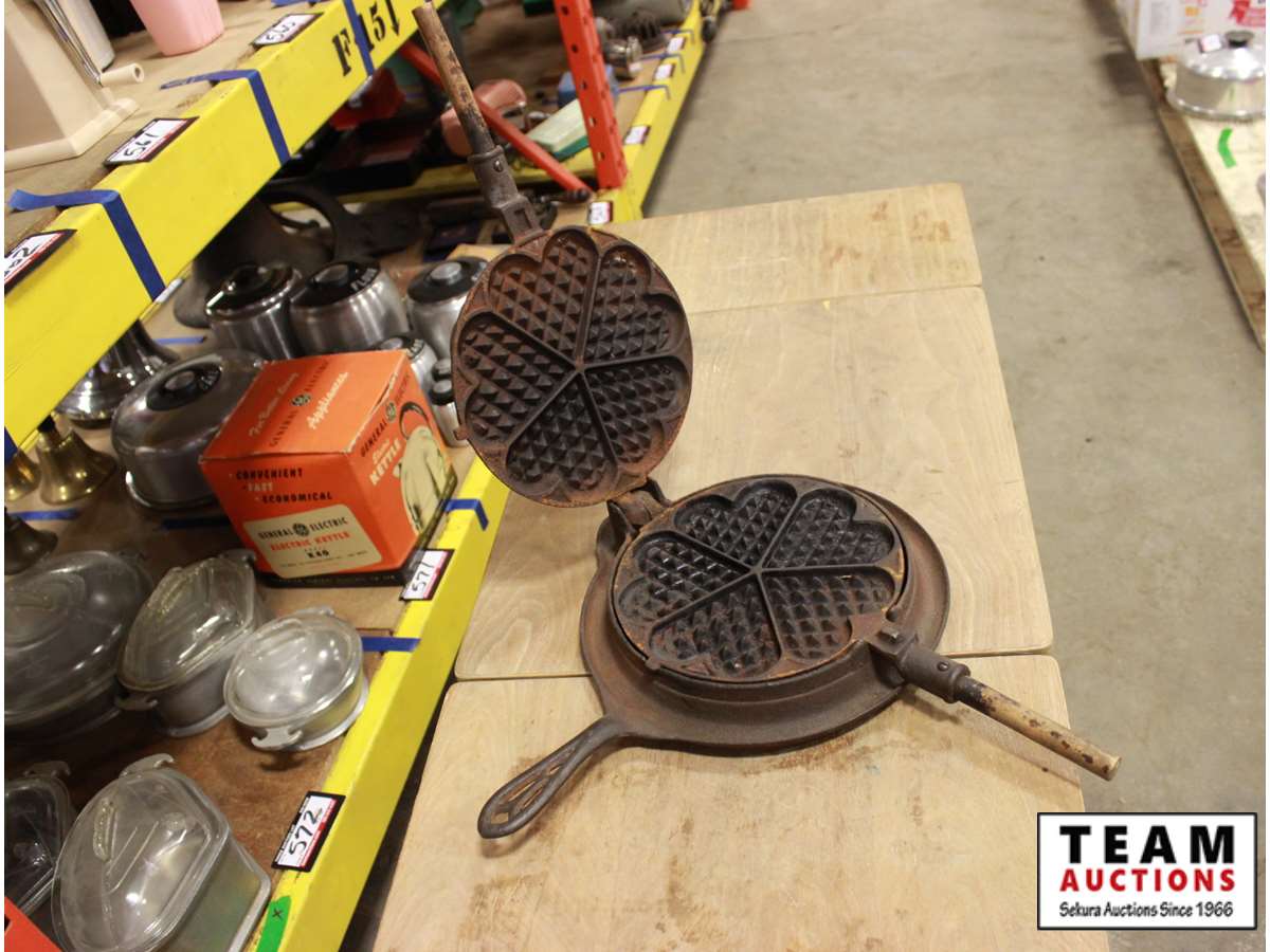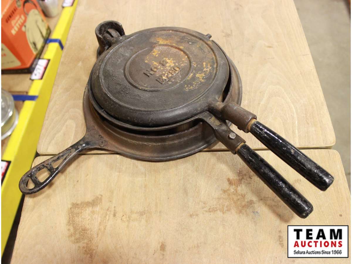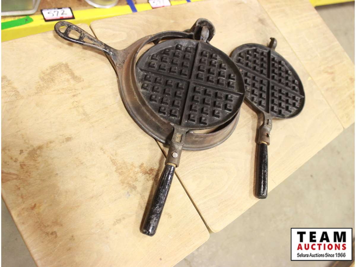 584 (2) Stove Top Cast Iron Round Waffle Iron
