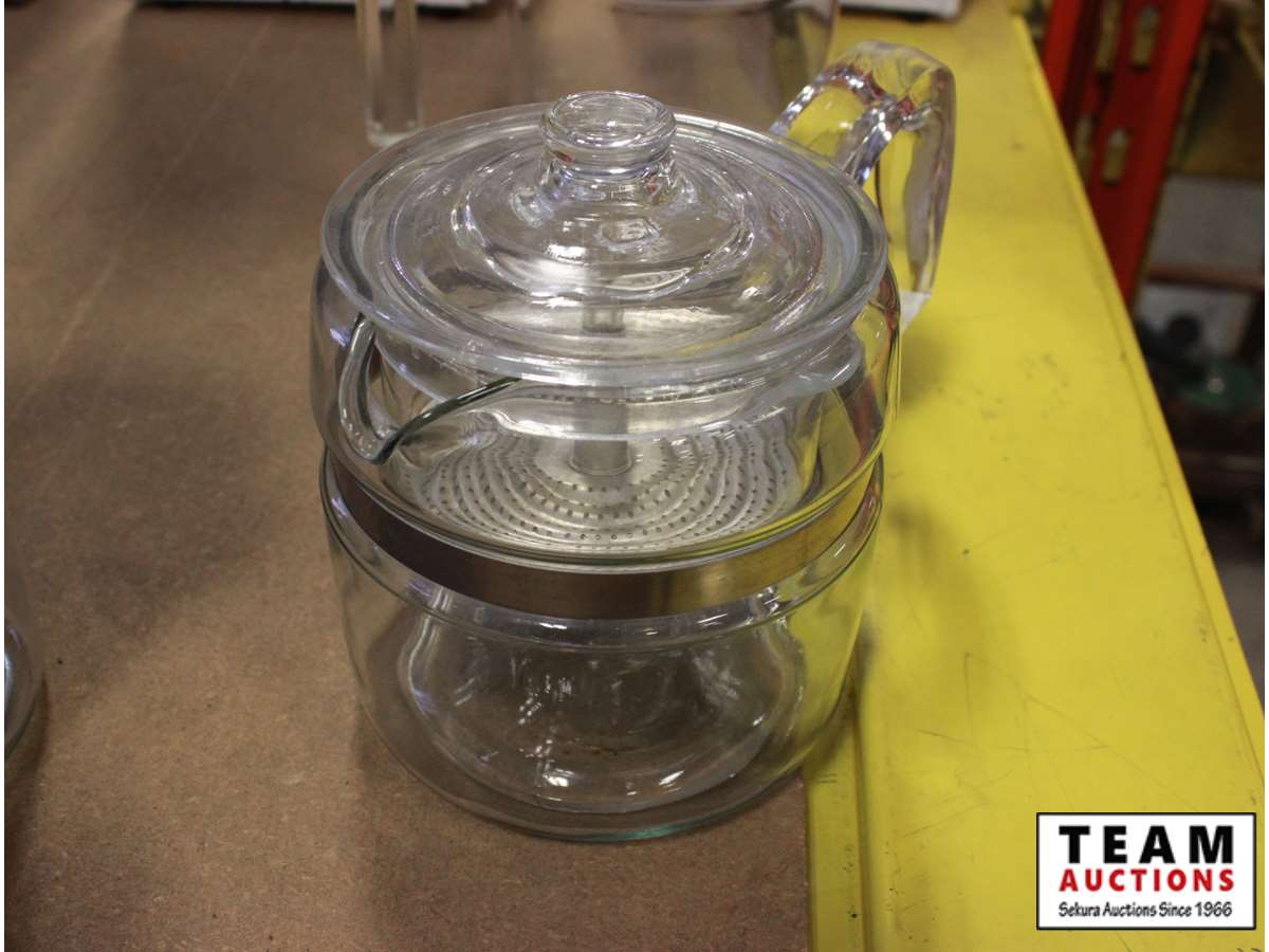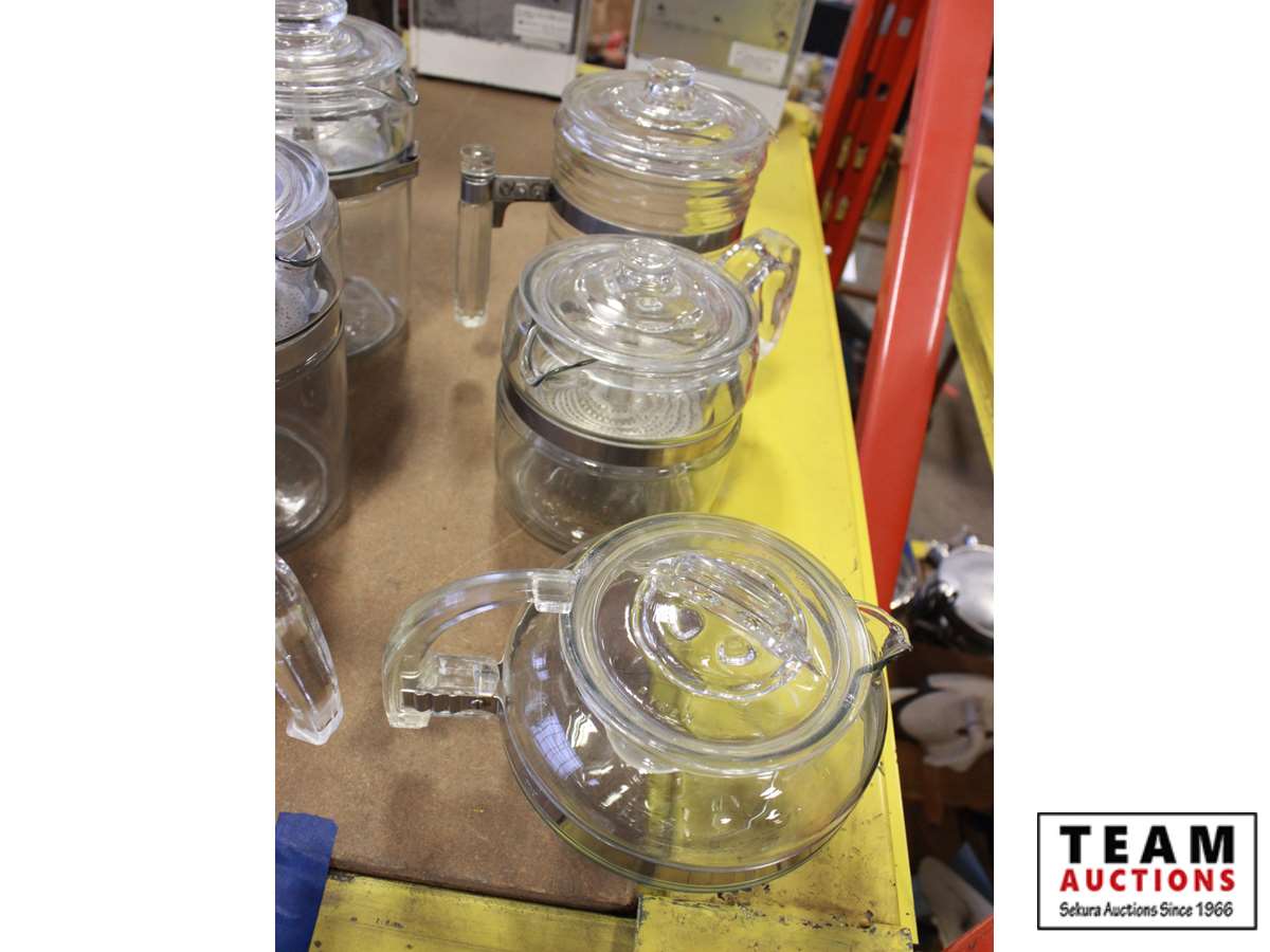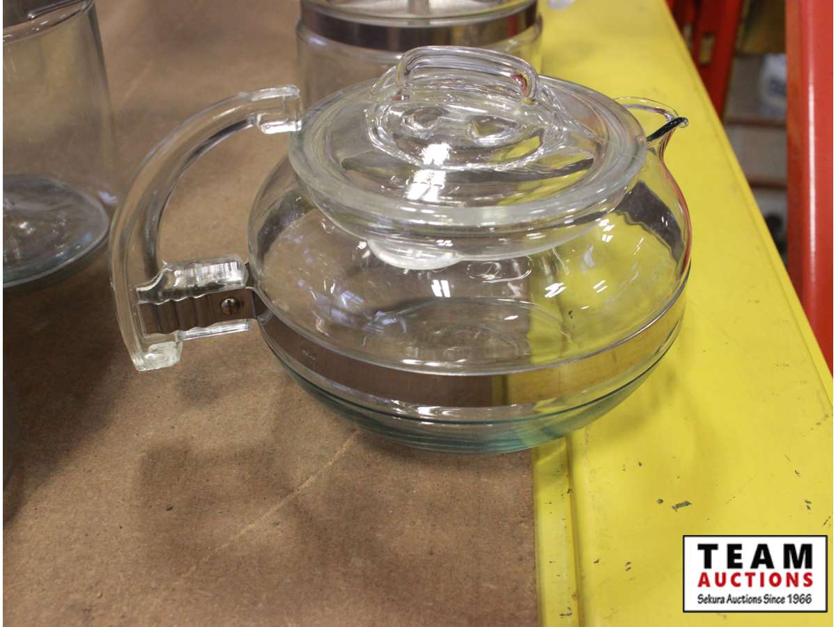 (2) coffee pots, (1) tea pot