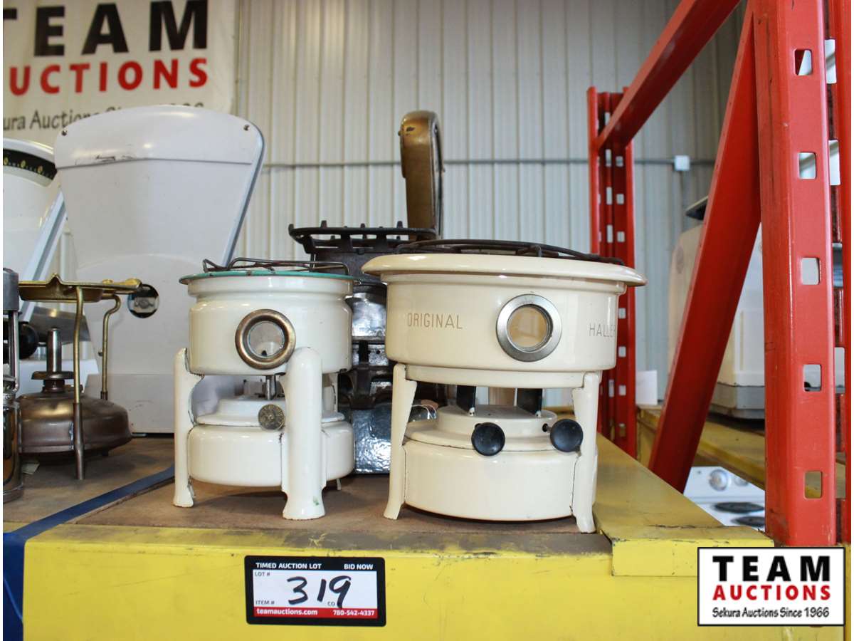 (1) one wick stove, (1) two wick stove, (1) 1901 Beatrice #33