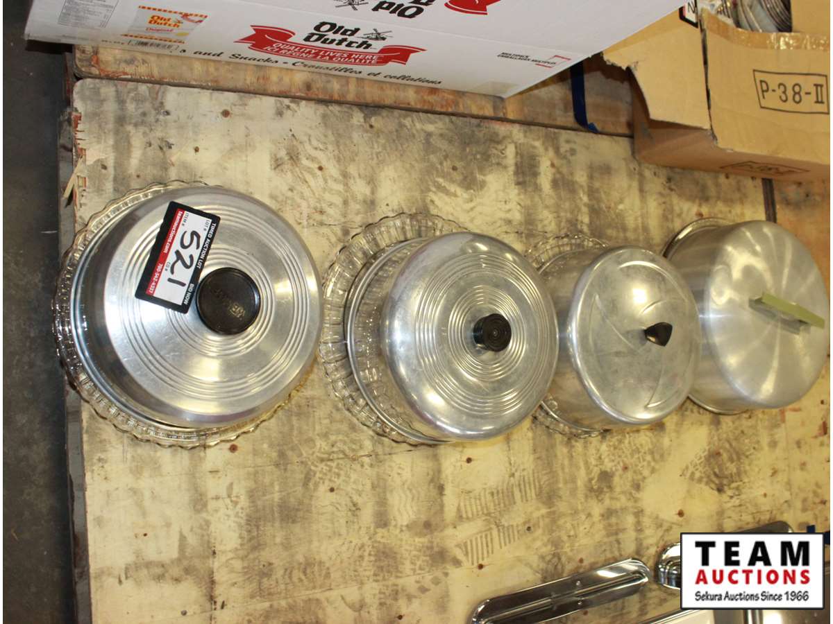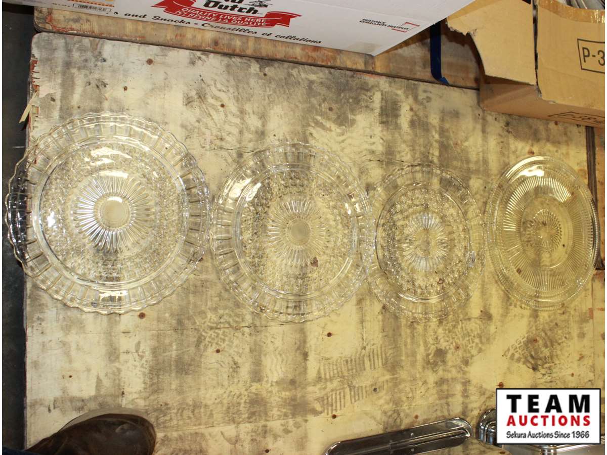 521 (4) Glass Cake Trays with Metal Lids