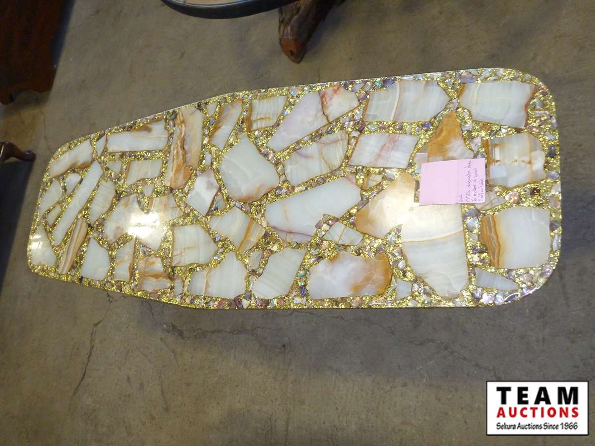 952 Alabaster Stone And Mother of Pearl Coffee Table