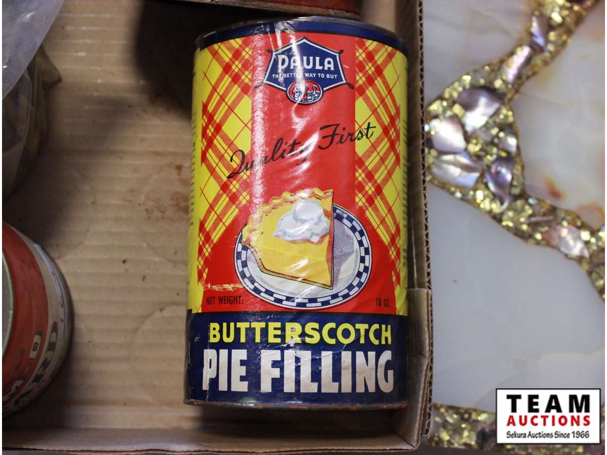 custard power(full), butter scotch pie filing (full), noodle soup (full), custard power (full), malt exact (full), ham & bacon cure (1/3 full)