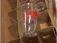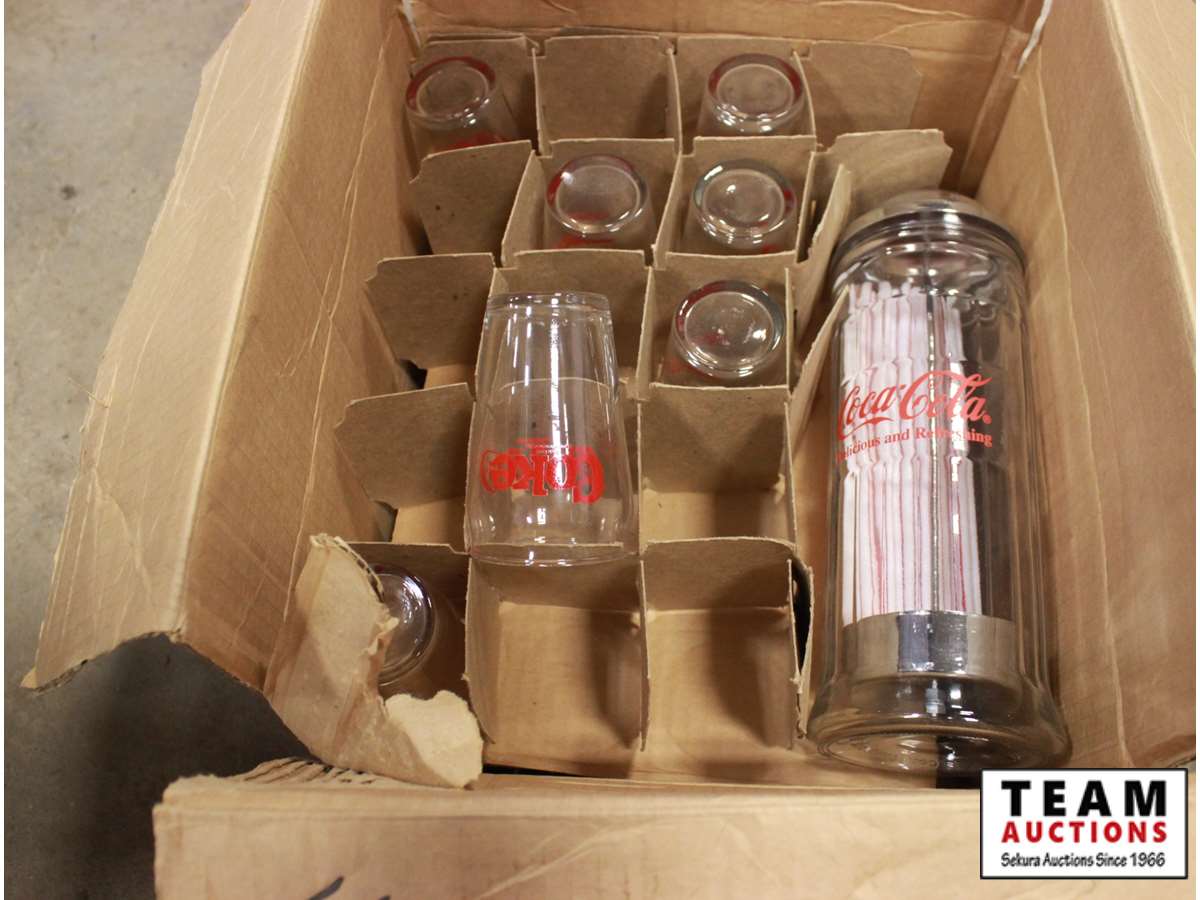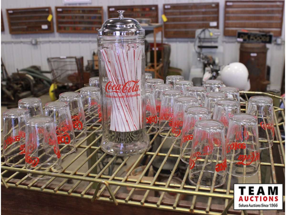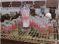 with coke glass and glass straw dispenser