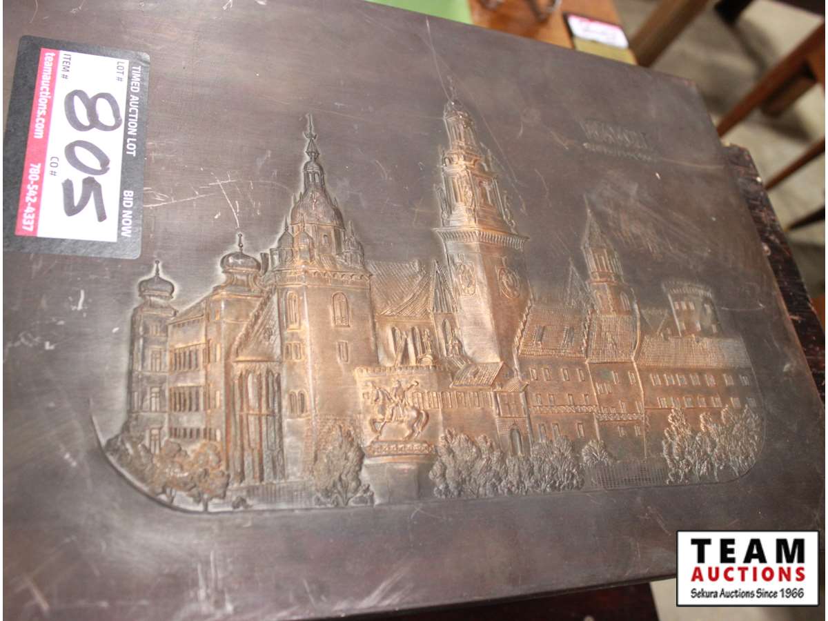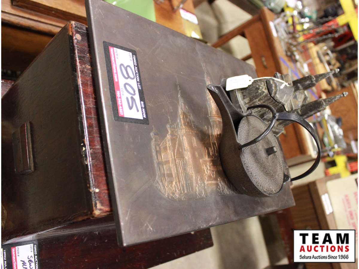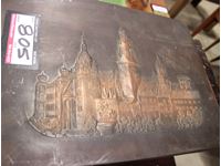 805 Copper Tooled Picture w/ 1800's Russian Coin Bank