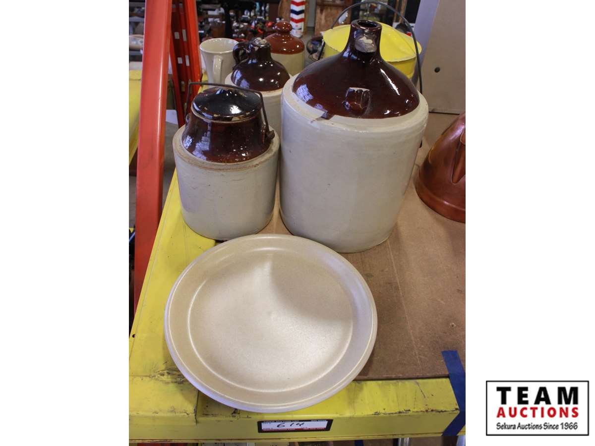 614 Crock Plate & (2) Jugs