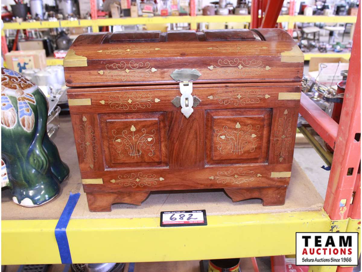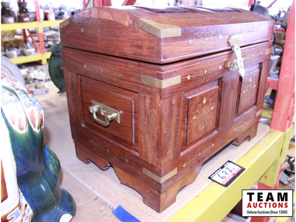 682 Decorative Wood Box With Brass Inlay