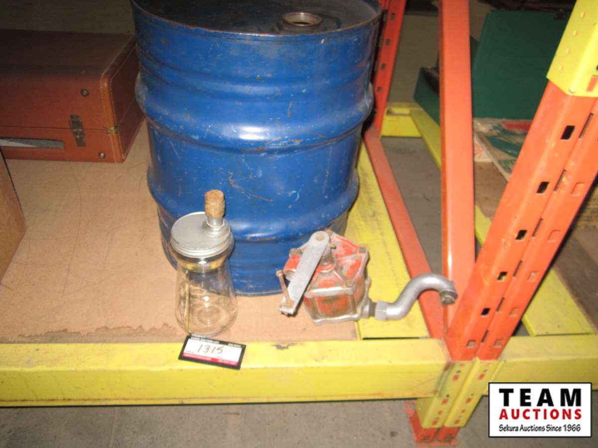 1315 Imperial Oil Barrel, Oil Glass Jar & Pump