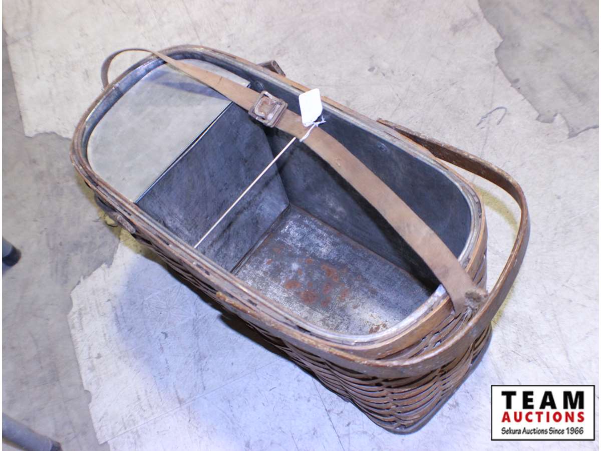1127 Metal Lidded Wicker Picnic Basket and Ice Chest