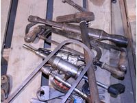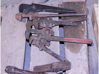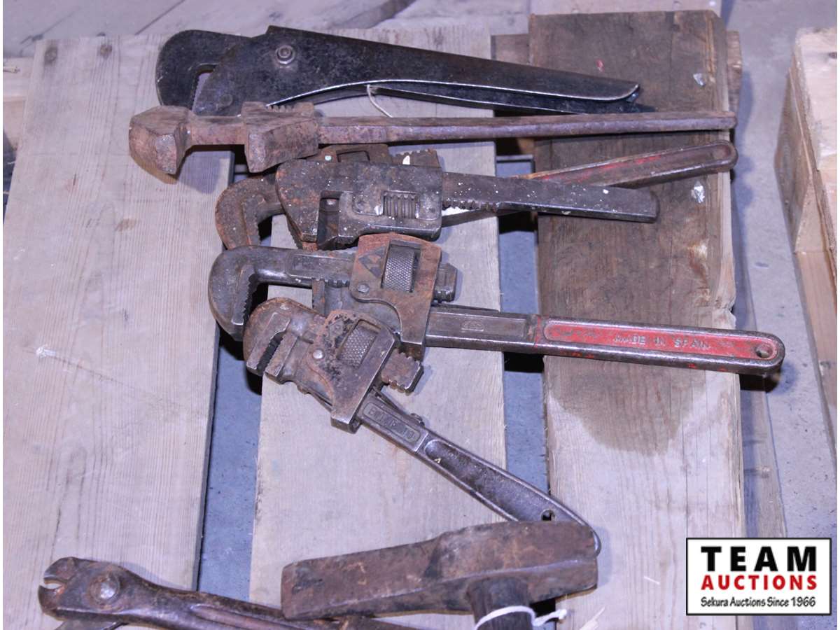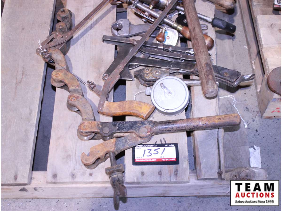 prospector hammer, hatchet, pipe cutters, grease gun, coping saw, pipe wrenches, misc hand tools & nail puller