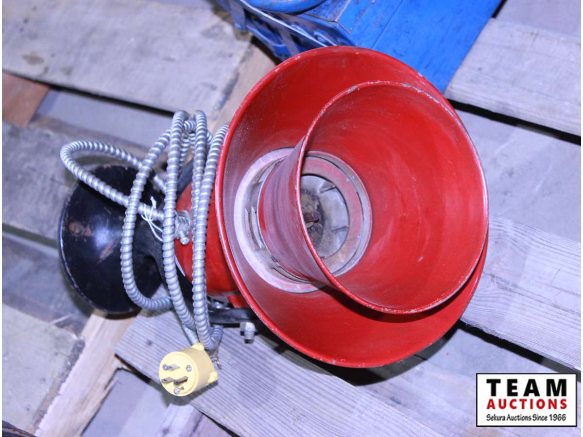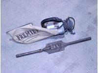 1/3 cast iron motor with brass pump, siren, tool box & oiler, Foremost milk crate, & 6 spark plug compressors