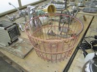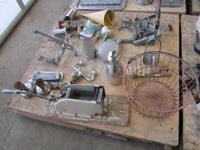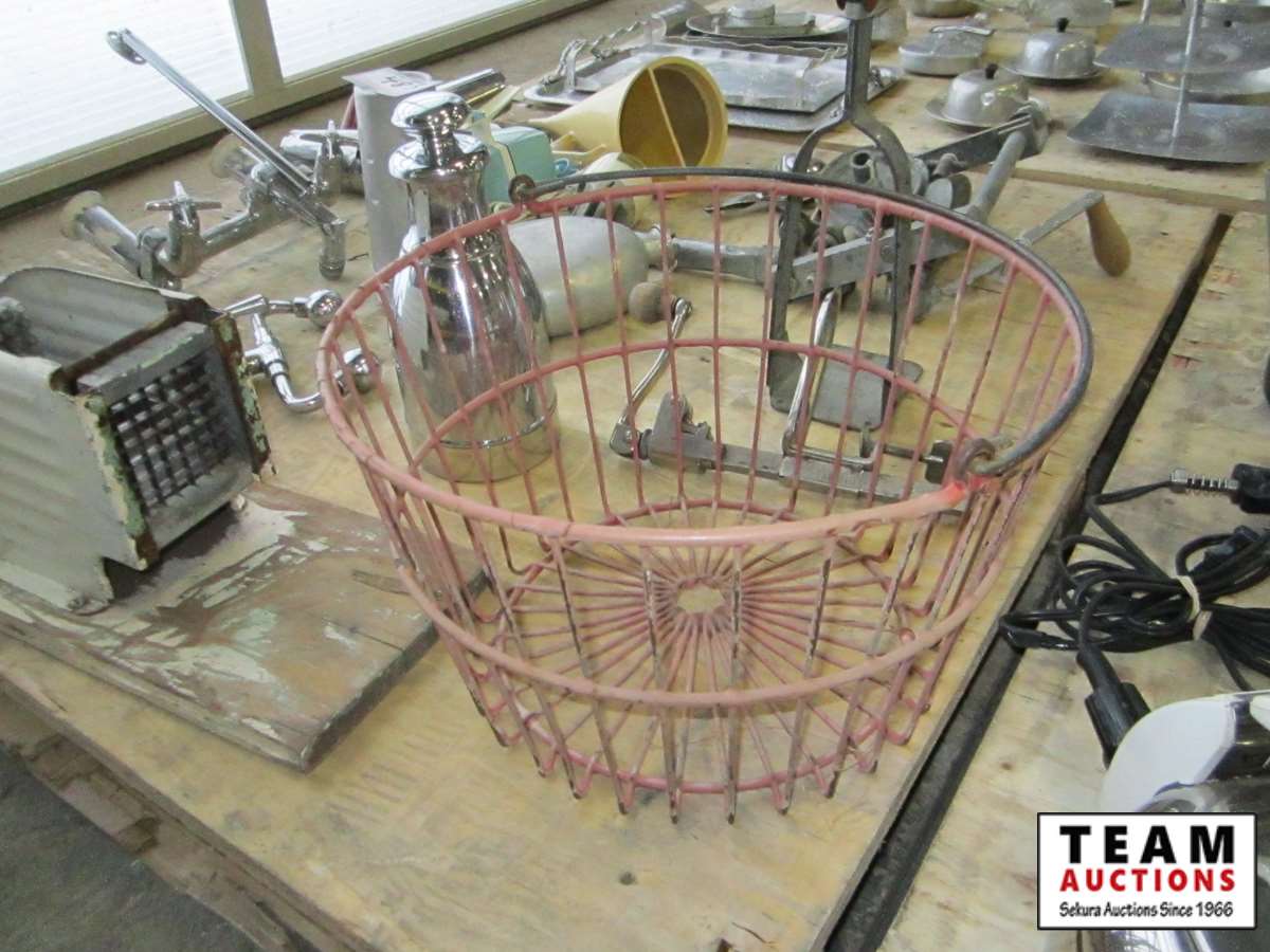 faucet, French fry cutter, bottle corker, funnel, slope gauge, wire basket