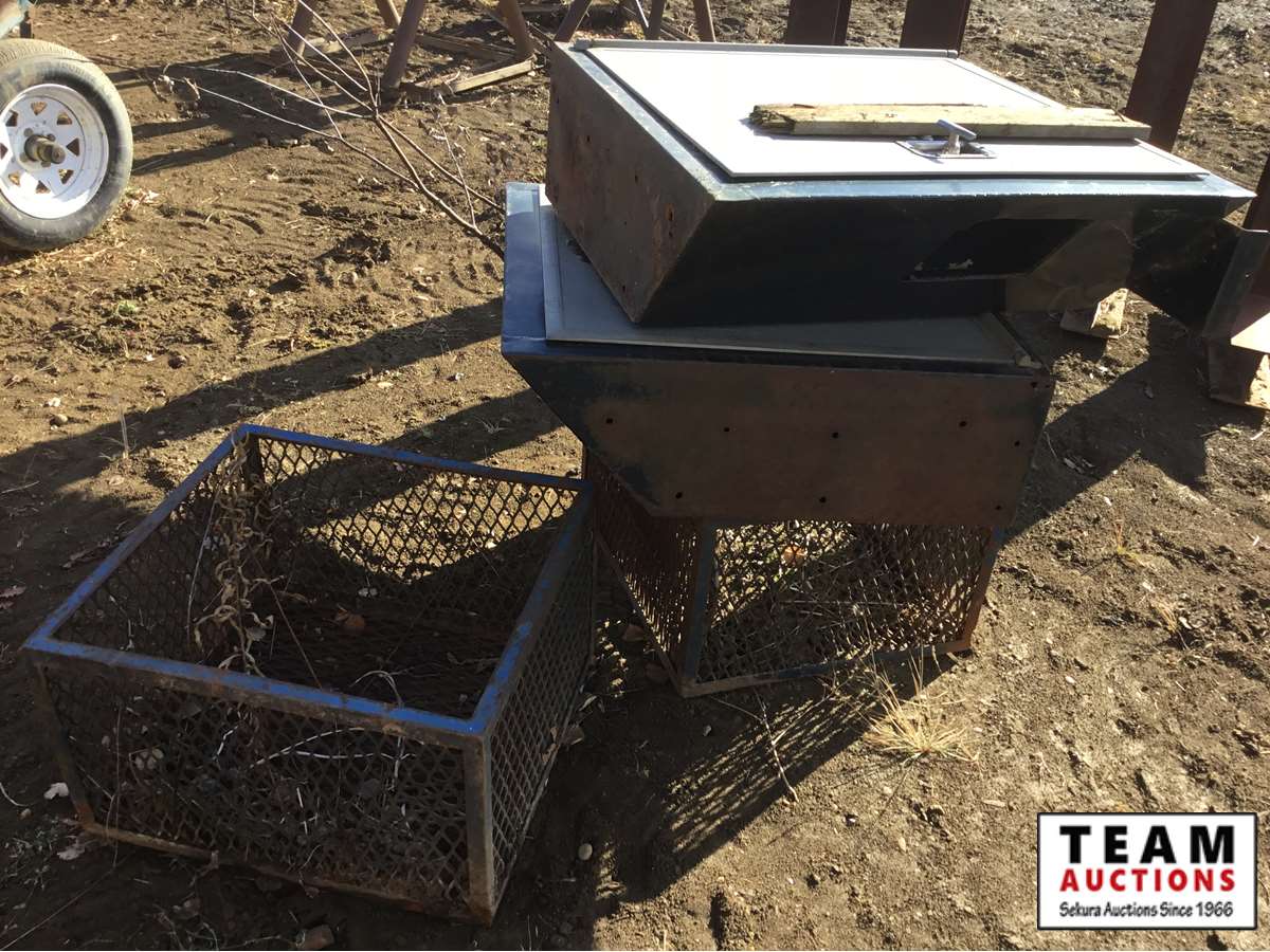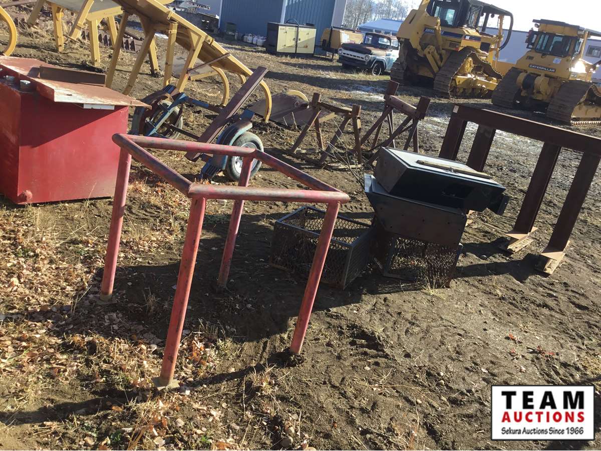 (20 tool box's, (1) oil storage tank, (5) steel stands, chain link fence, small trailer axle
