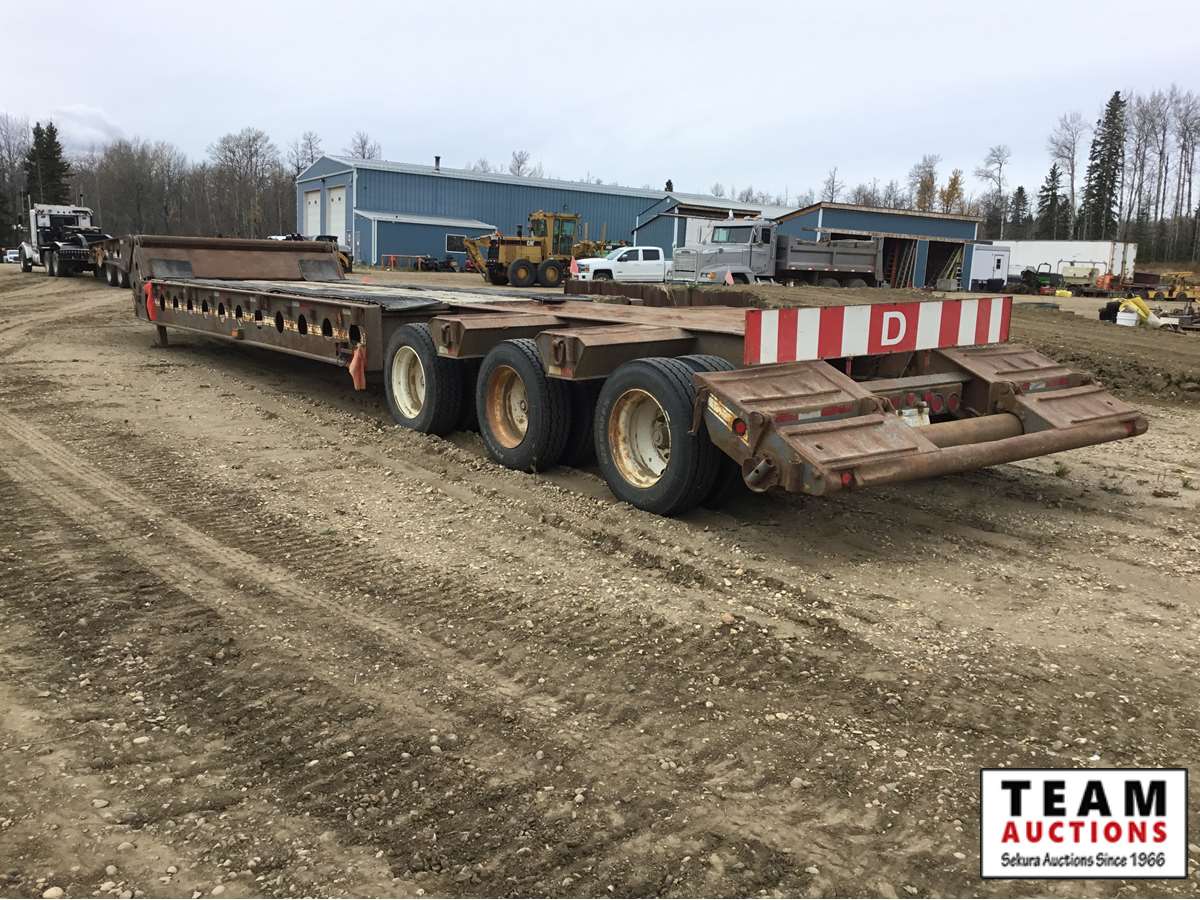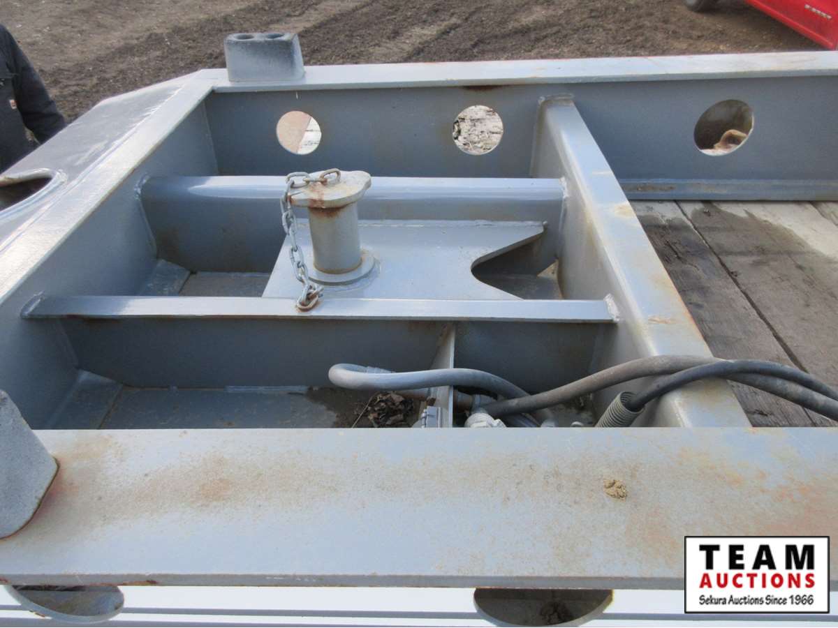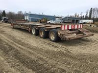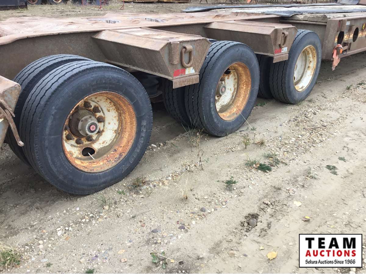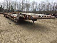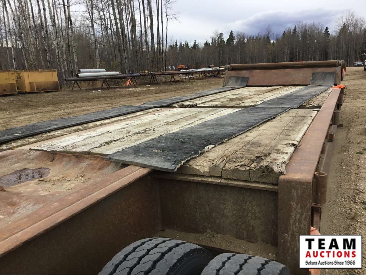 10' wide, 7' jeep extension, rear flip beaver tail, rear and center live rolls, air ride, wide load lights, pin pockets, 22.5" rubber, Alberta registered, current CVIP