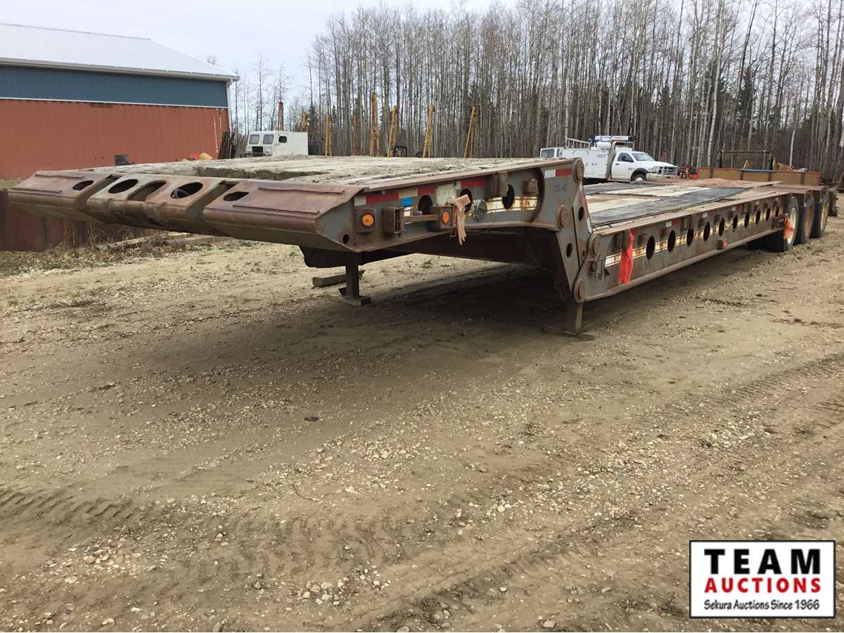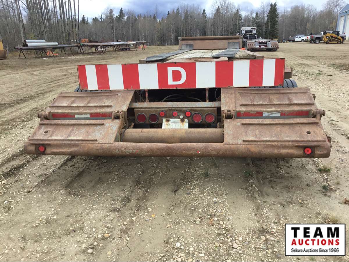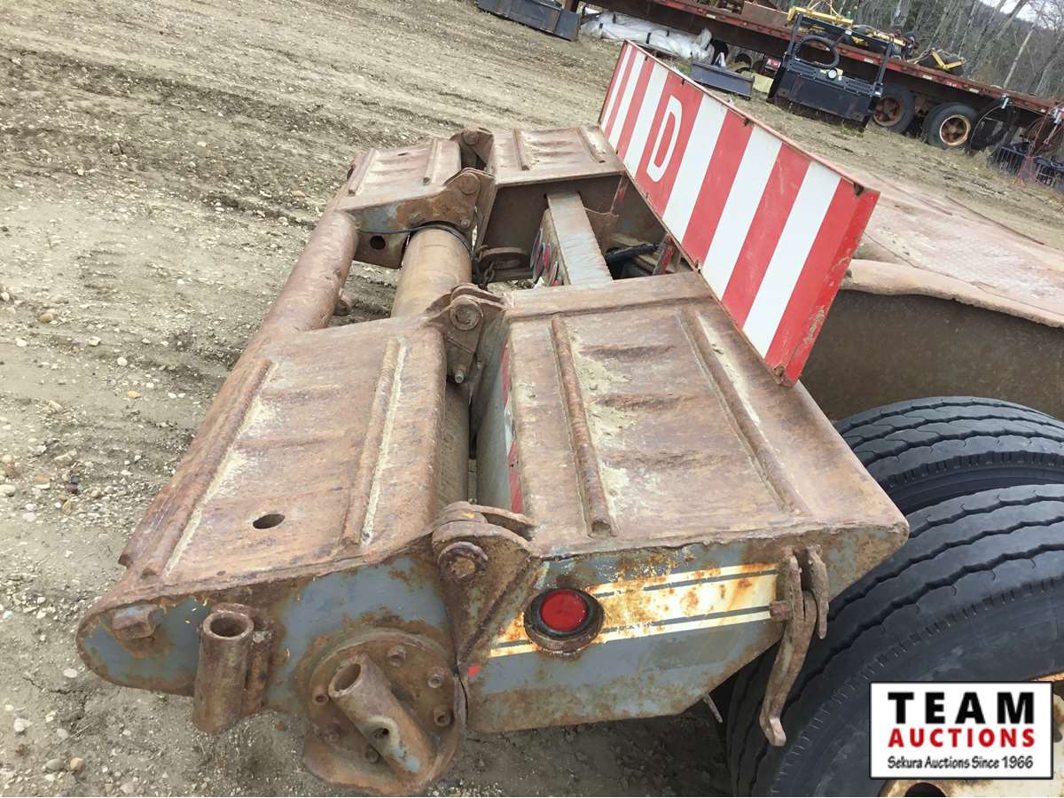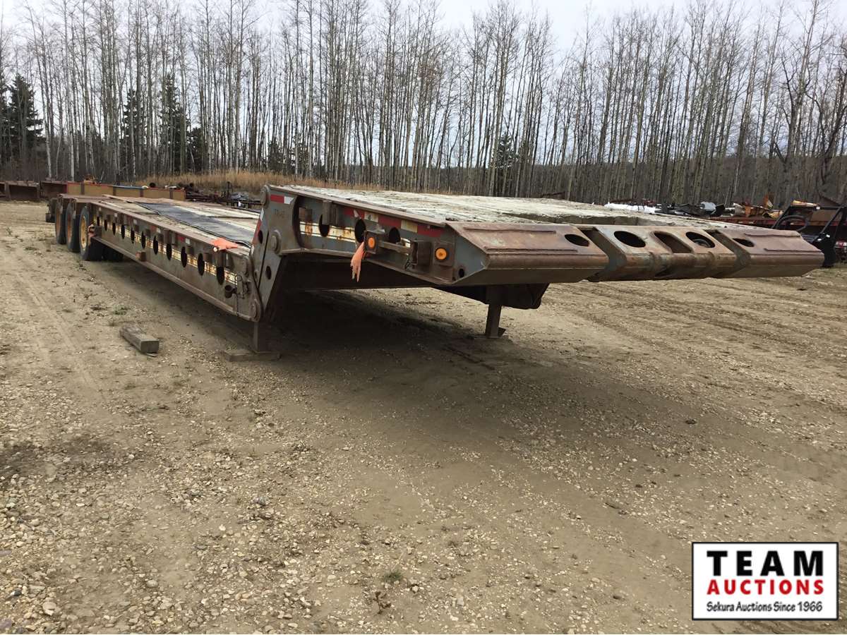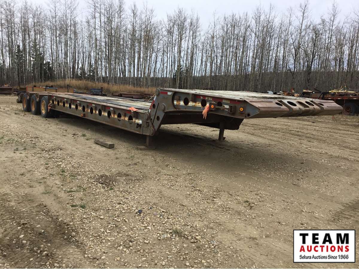 10' wide, 7' jeep extension, rear flip beaver tail, rear and center live rolls, air ride, wide load lights, pin pockets, 22.5" rubber, Alberta registered, current CVIP
