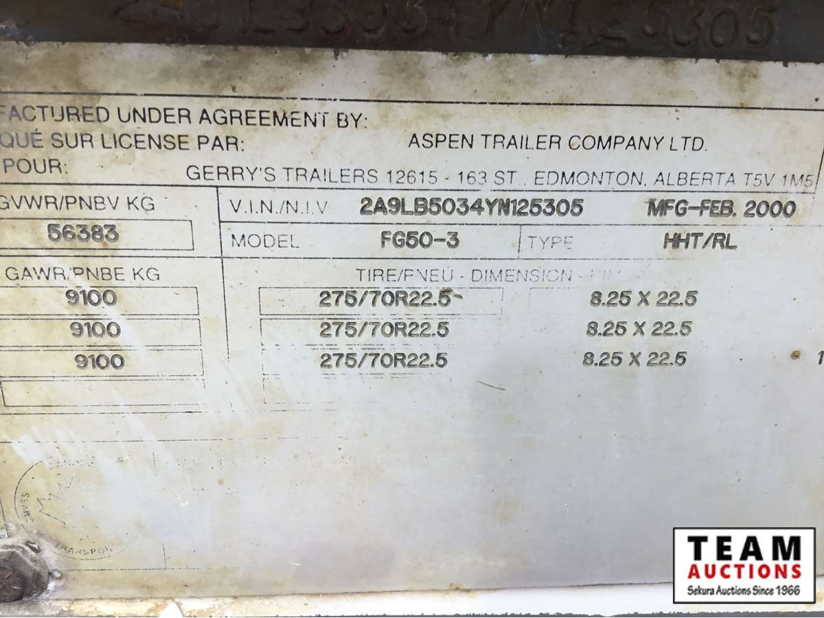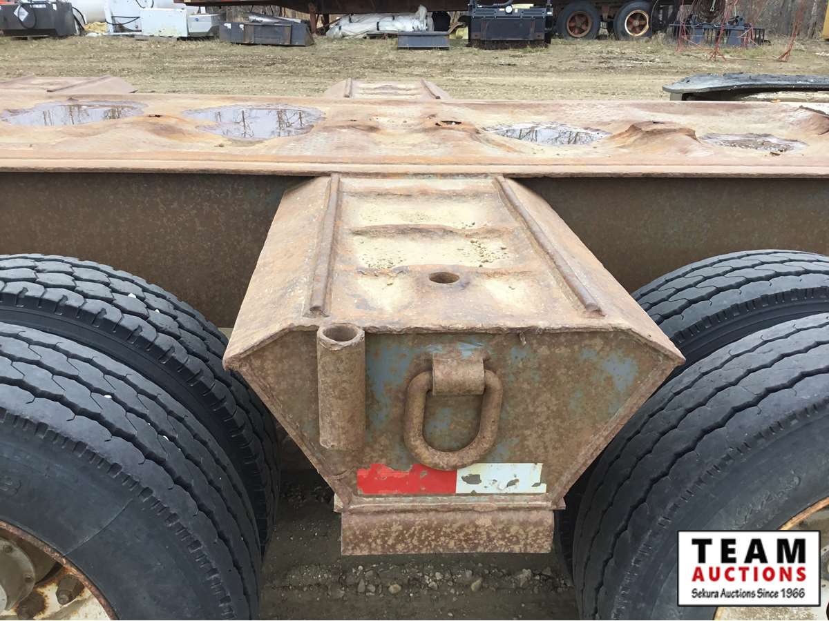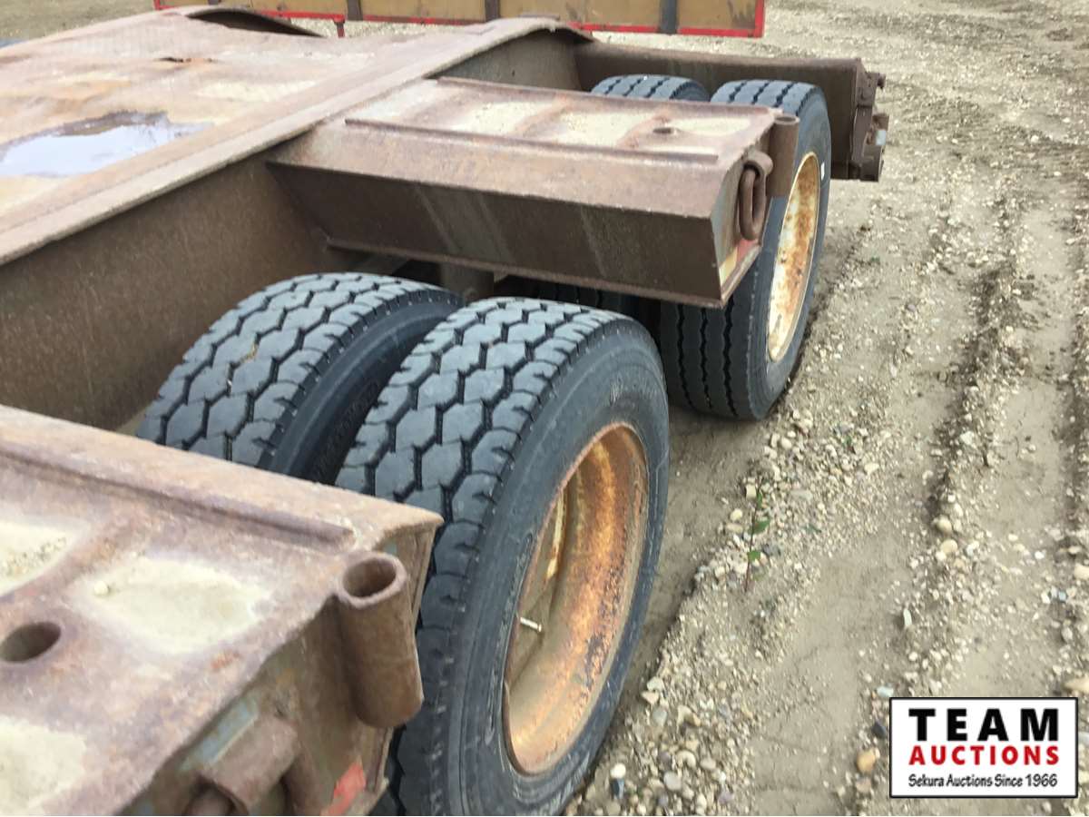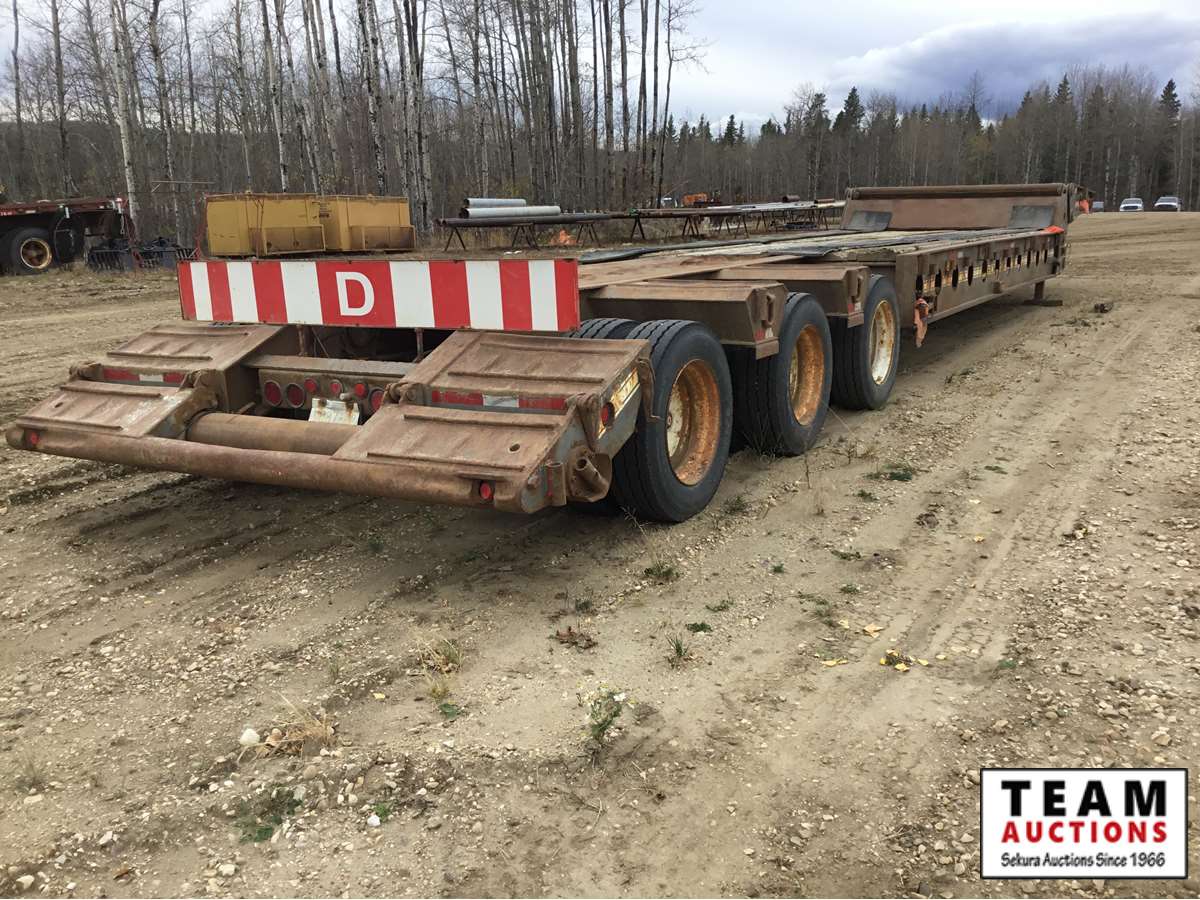 10' wide, 7' jeep extension, rear flip beaver tail, rear and center live rolls, air ride, wide load lights, pin pockets, 22.5" rubber, Alberta registered, current CVIP