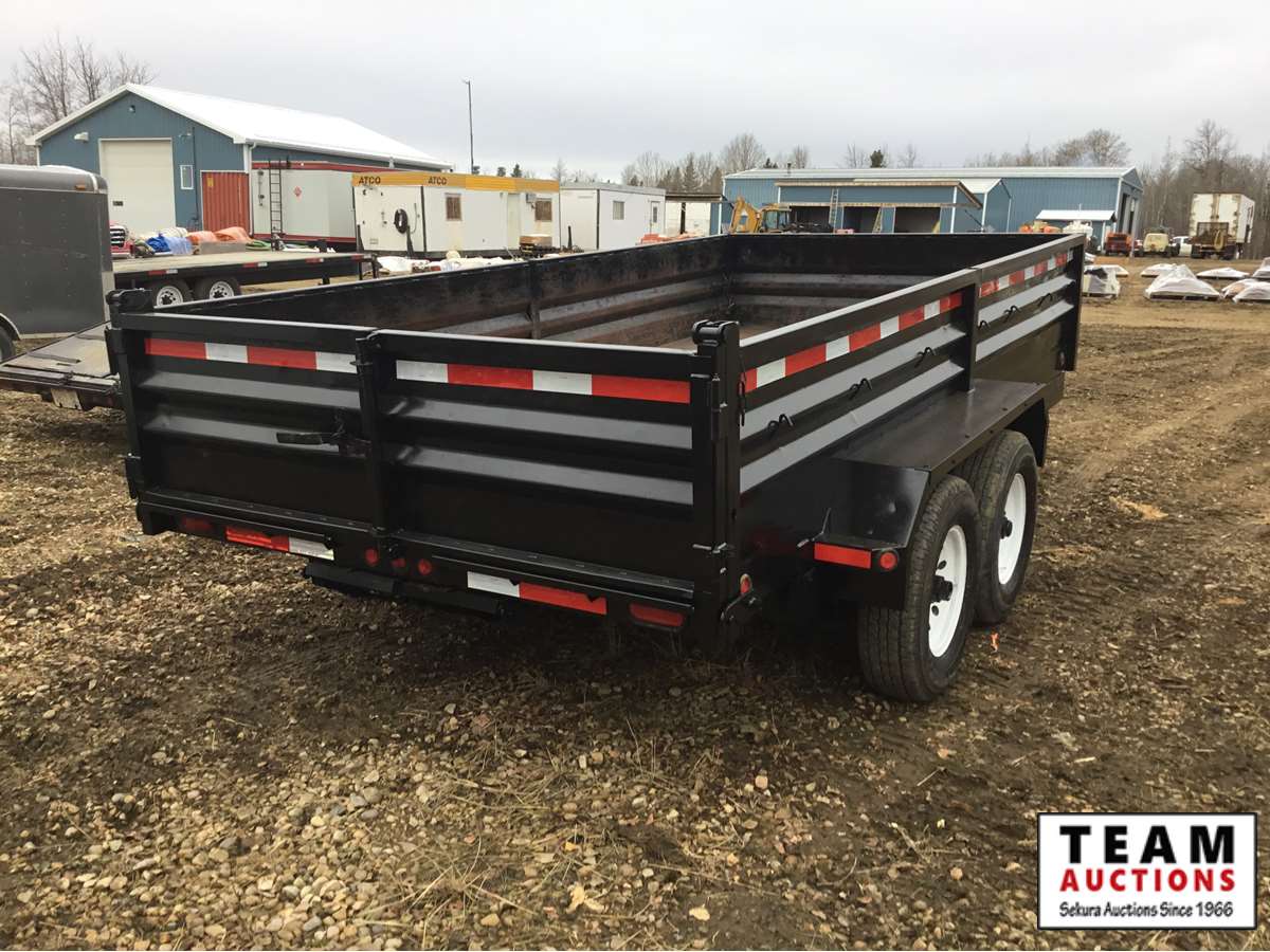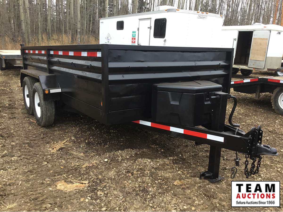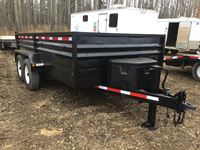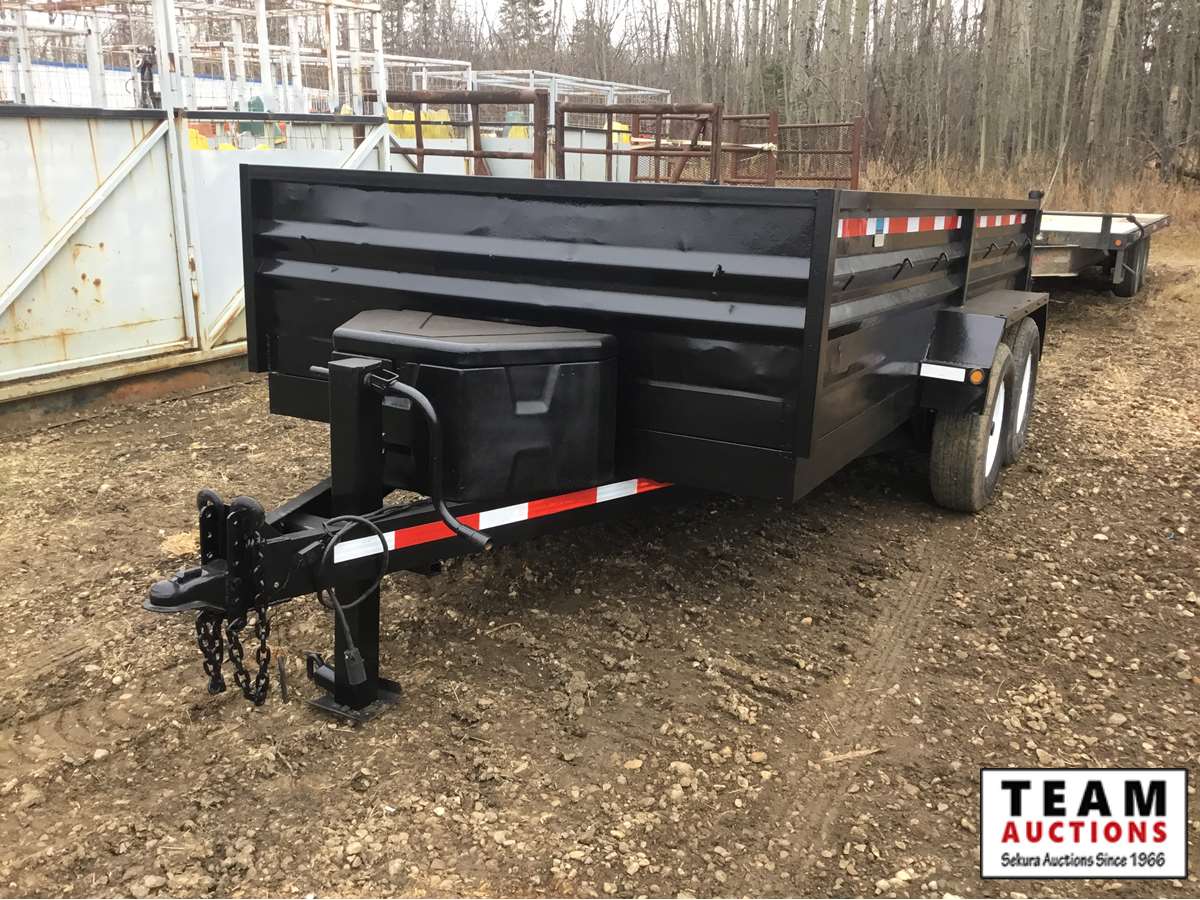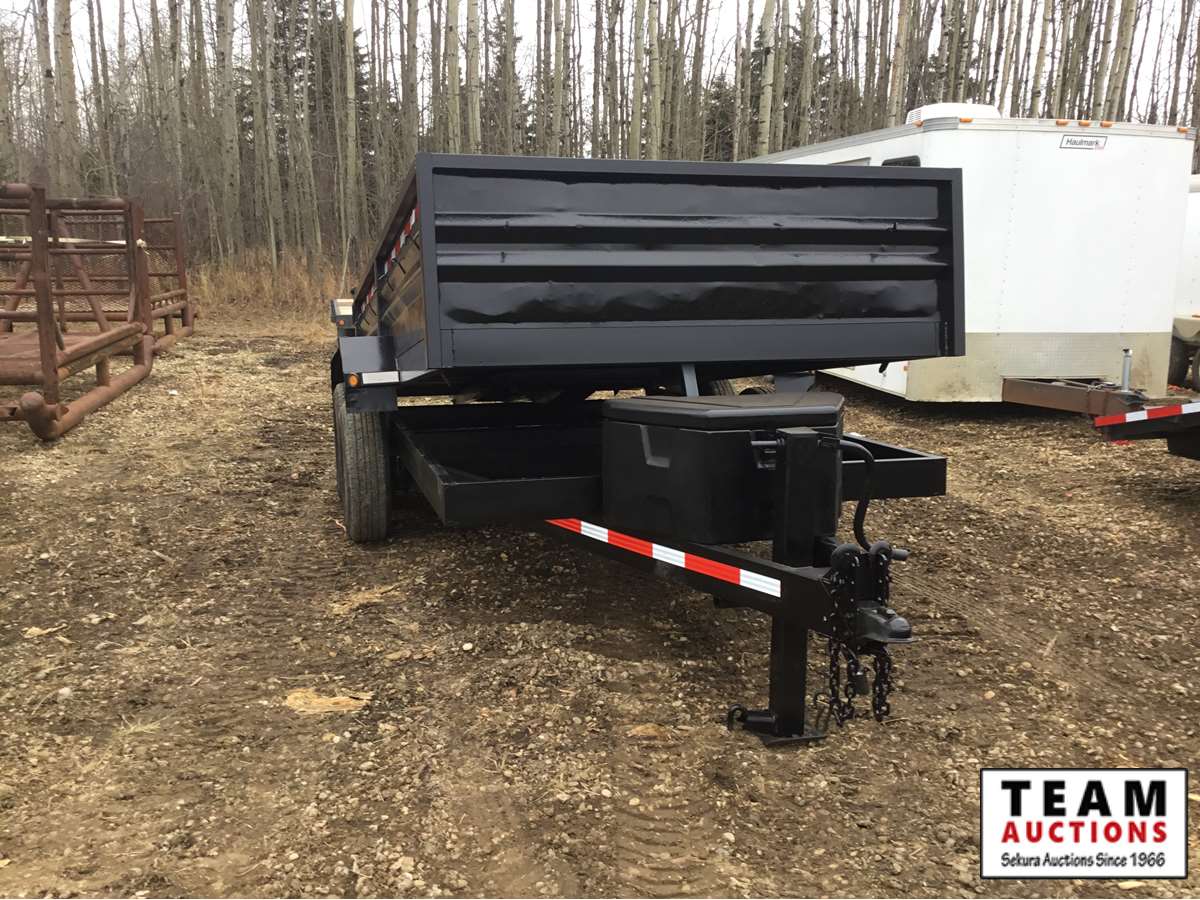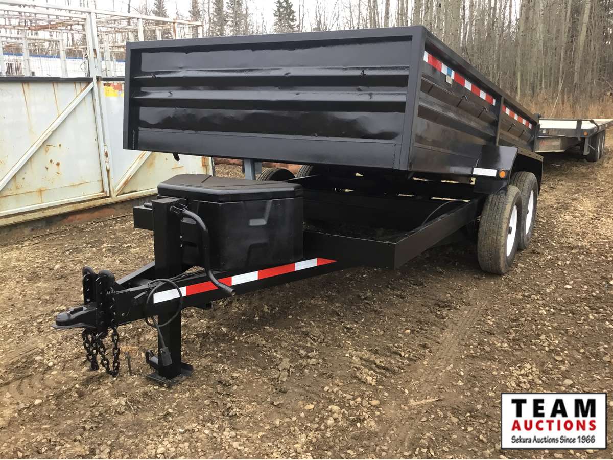 12V hydraulic hoist, rear loading ramps, good tires, just sand blasted and painted, Alberta registered, current Alberta CVIP