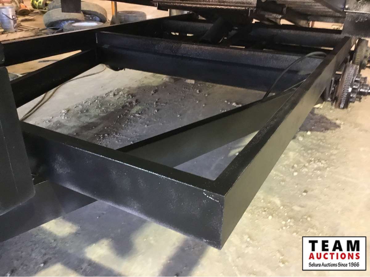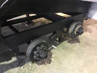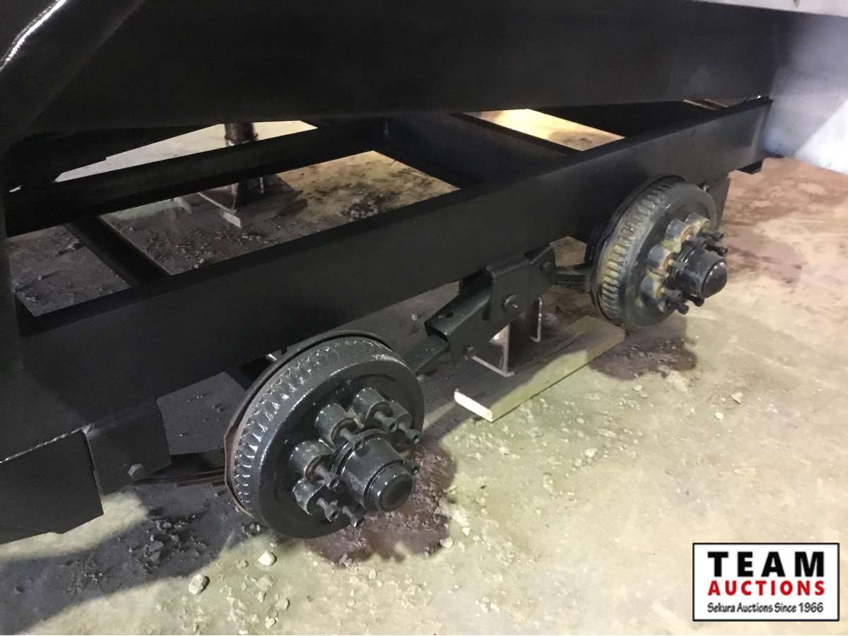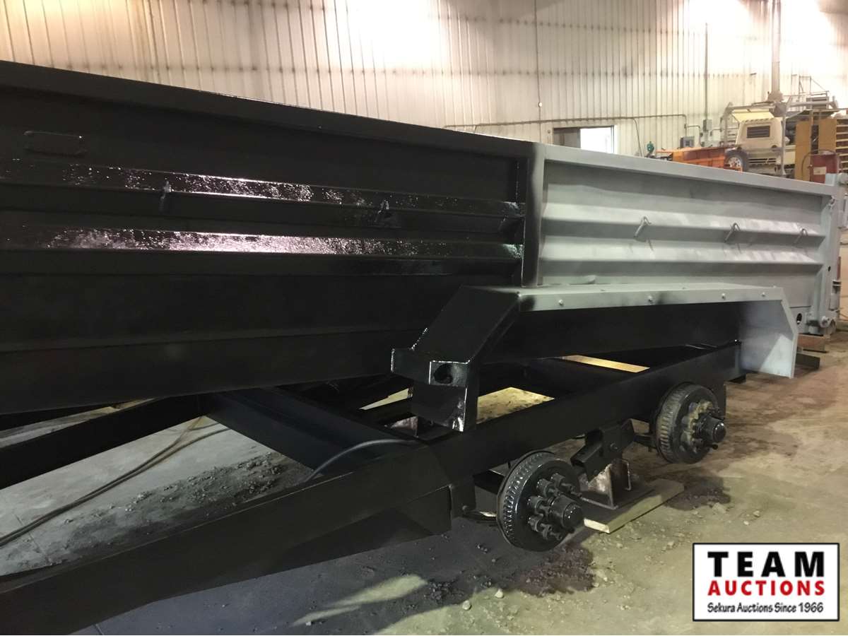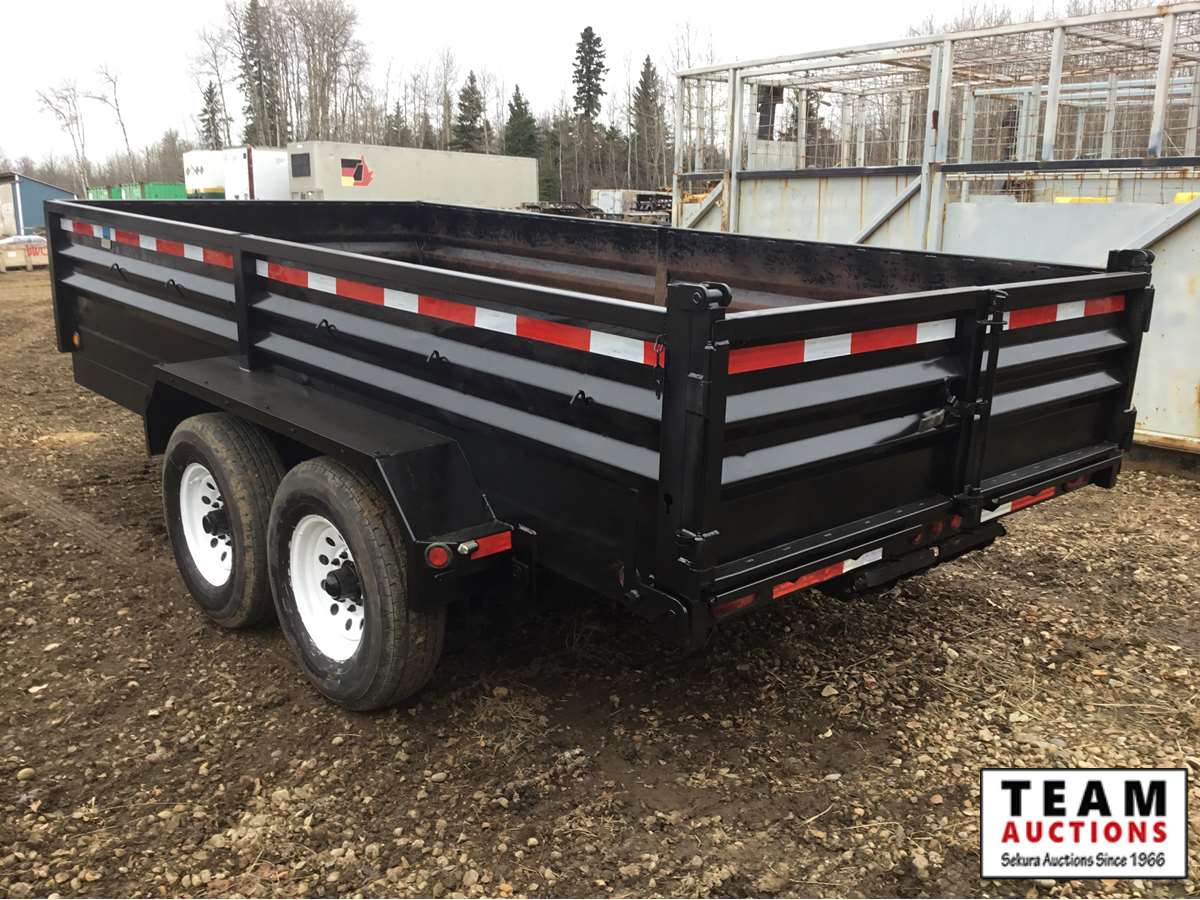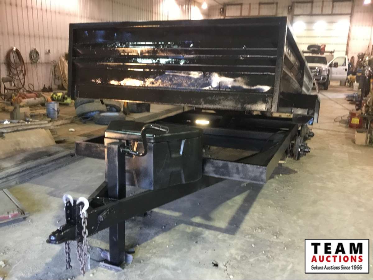 12V hydraulic hoist, rear loading ramps, good tires, just sand blasted and painted, Alberta registered, current Alberta CVIP