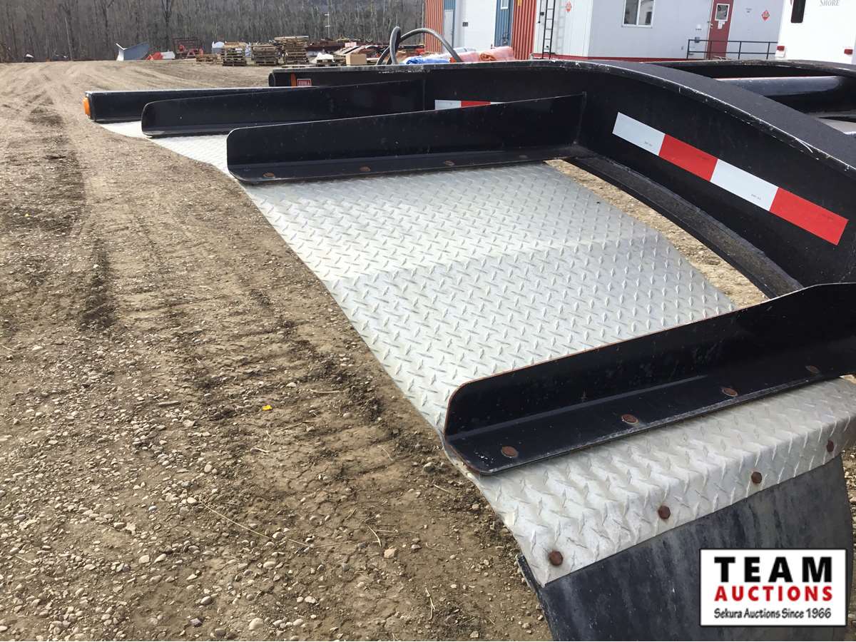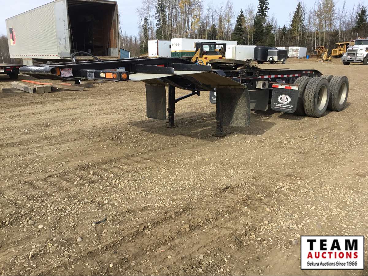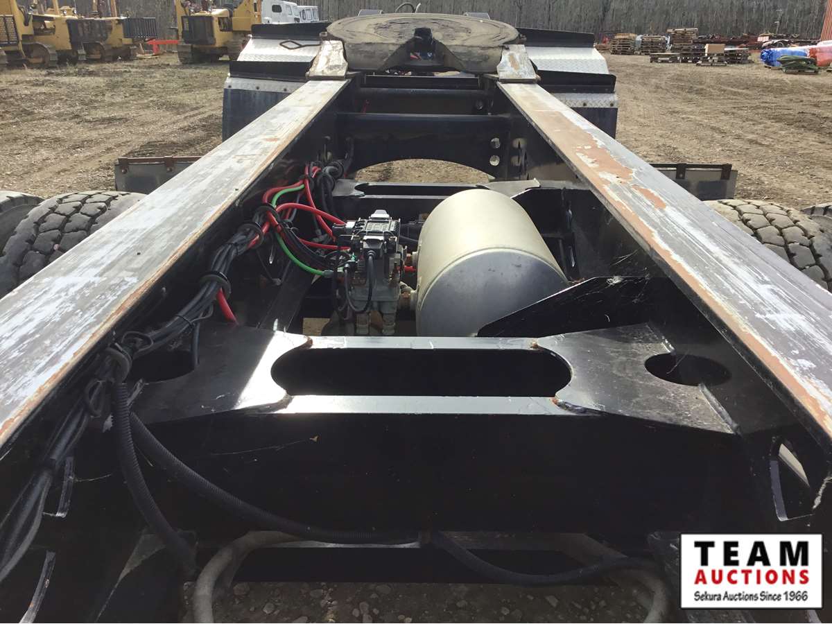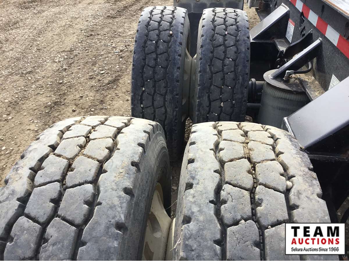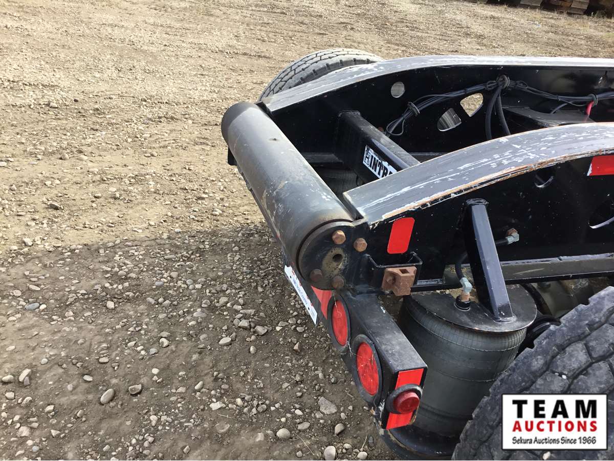 air ride, wide track axles, 22" low pro tires on aluminum rims, rear live roll, sliding fifth wheel, Alberta registered, current CVIP