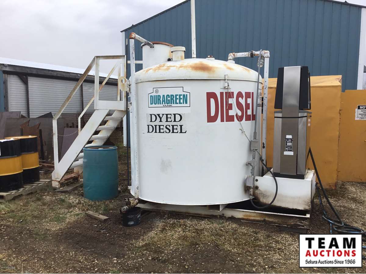 mounted on steel frame,walk up ladder, 110 V fuel pump, meter, hose and nozzle, was used for diesel since new