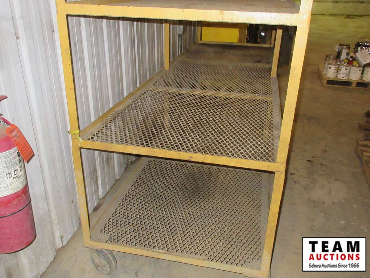 expanded metal shelves, 3' W x 10' L