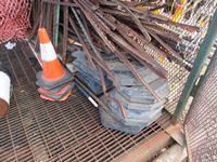 with snow fence, & poles, powerline warning poles, small cones, front door