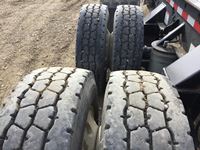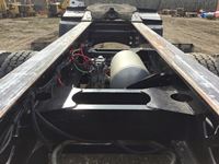 air ride, wide track axles, 22" low pro tires on aluminum rims, rear live roll, sliding fifth wheel, Alberta registered, current CVIP