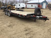7000 lb axles, 16" rubber, spare tire, stake pockets, last 2' tapered with spring loaded ramps, Alberta registered, current safety