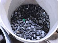 (1) bucket w/lawn mower wheel, pulley, misc. hardware, (1) bucket w/misc. nuts & bolts, large coupler, (1) bucket w/misc. small equipment wheels