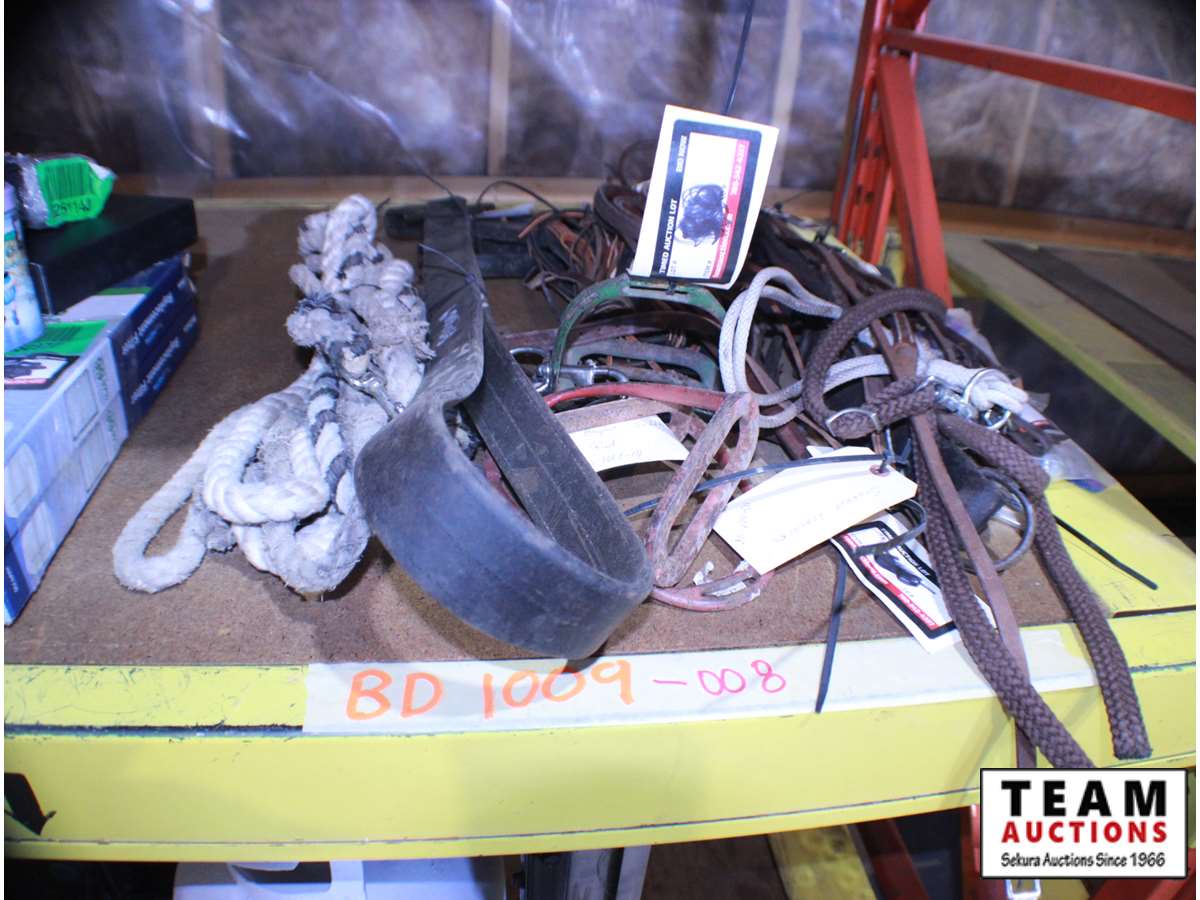 single tug, lead shanks, stirrups, leather lace, bridle, stirrup leathers, misc.
