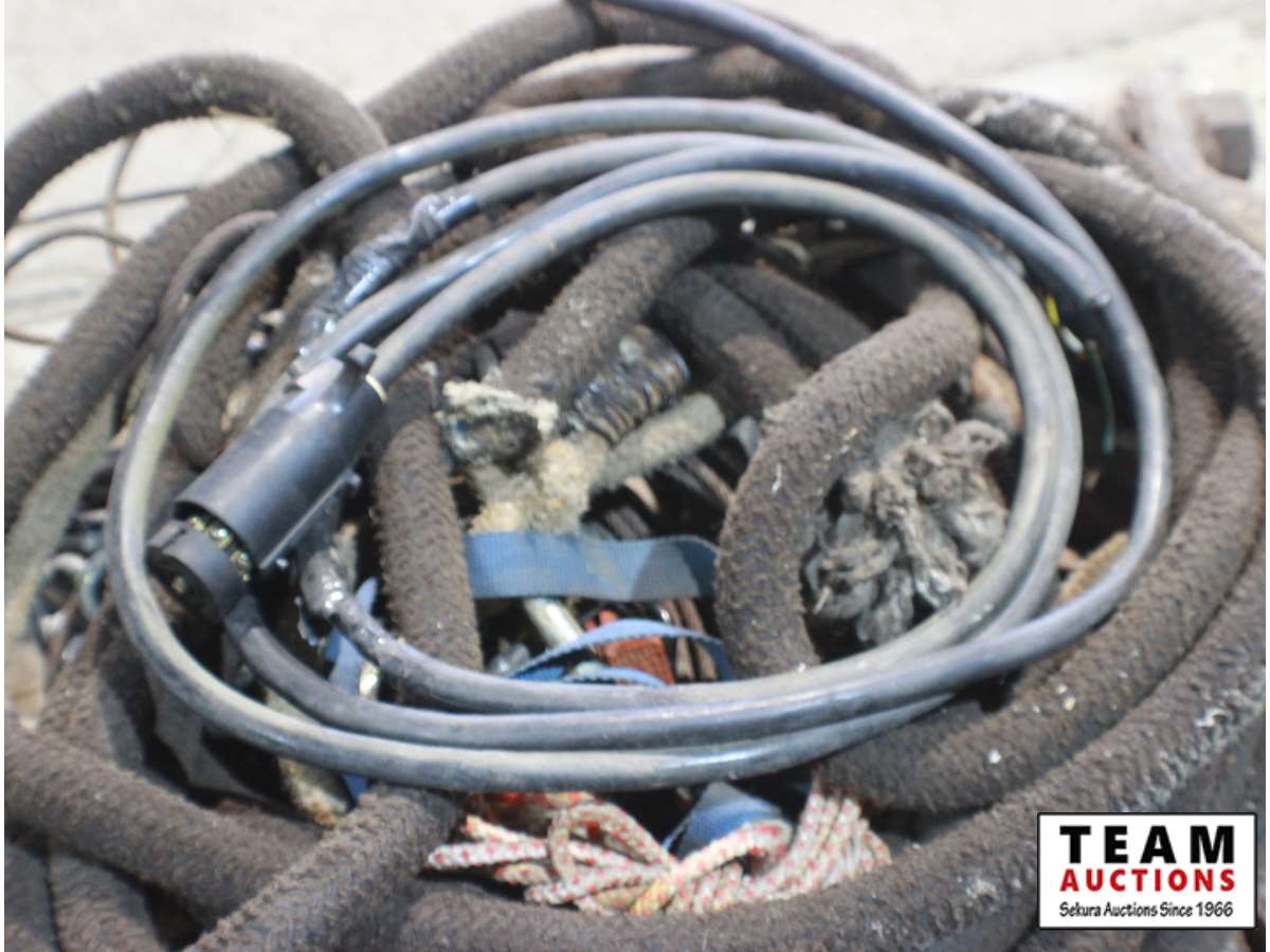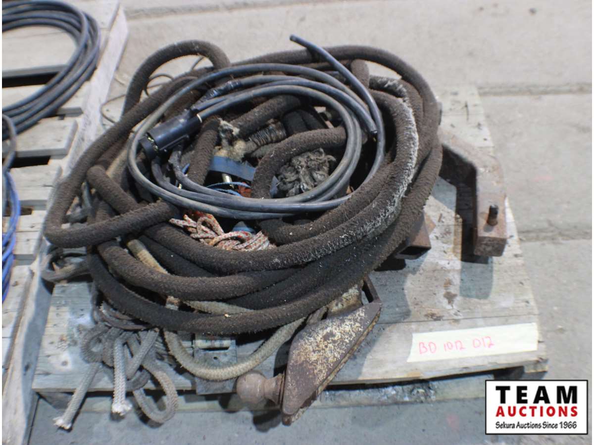 receiver hitches various sizes, trailer wire with connector, various ropes - pieces/sizes, misc.