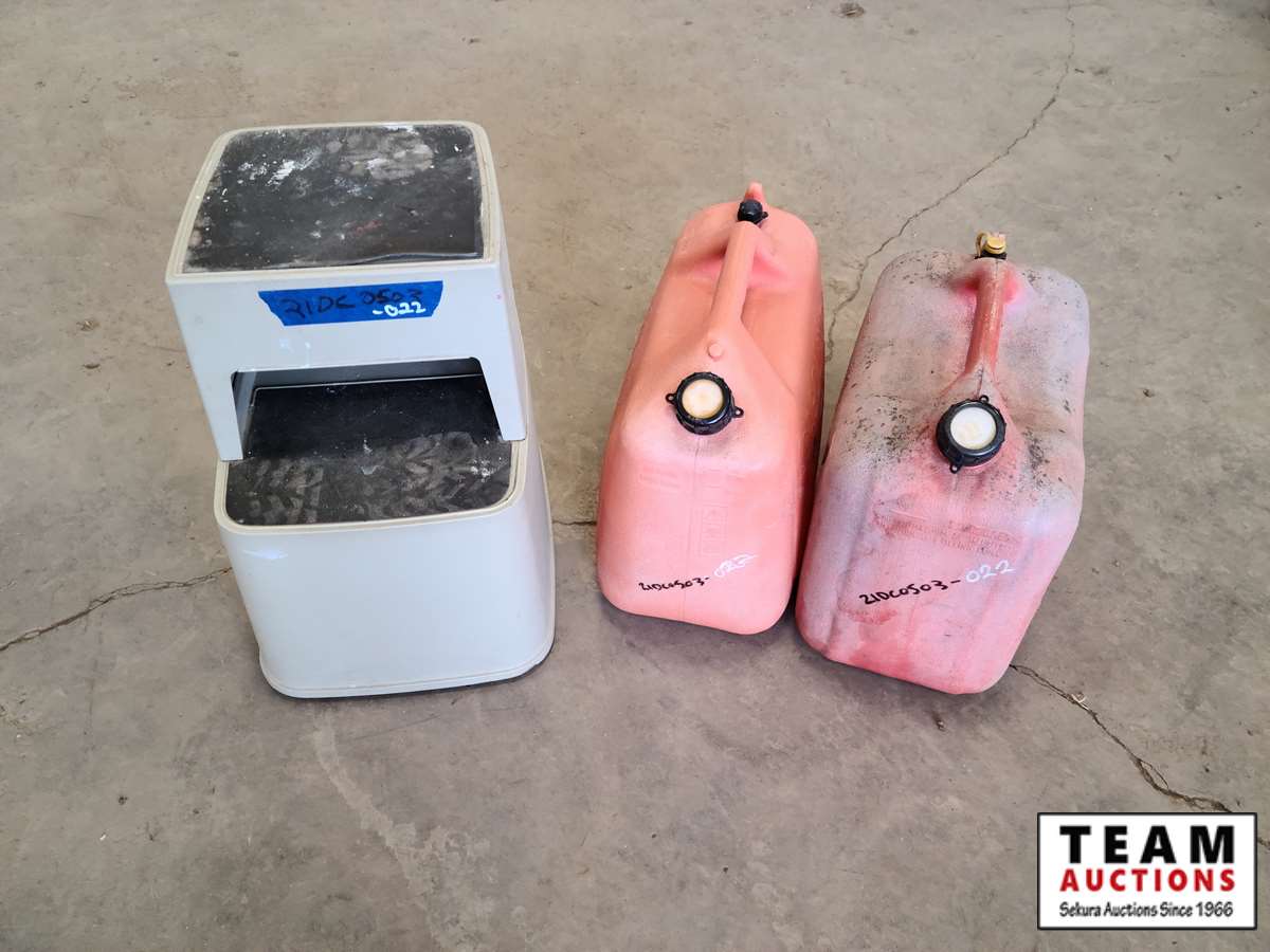 1089 (2) 5 gal Jerry Cans & Rolling Step Stool