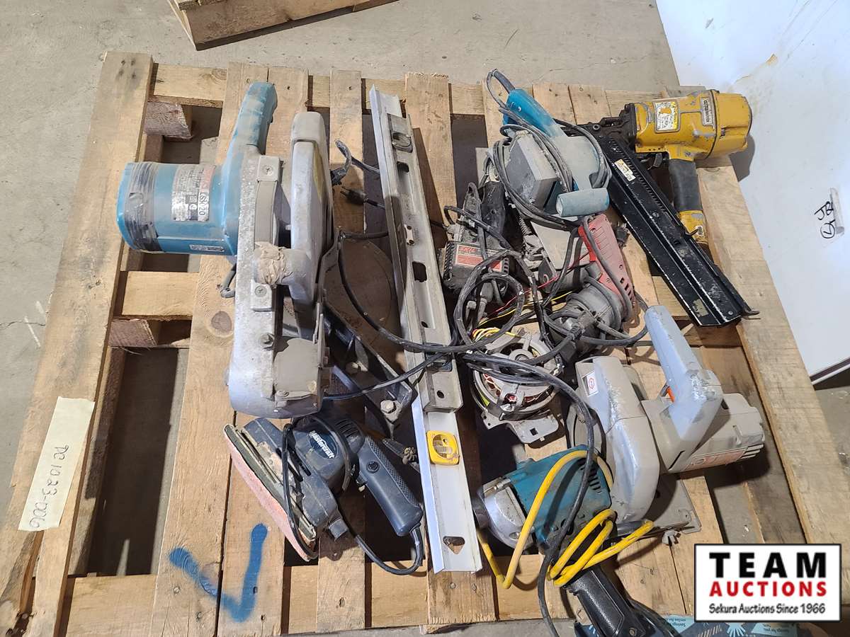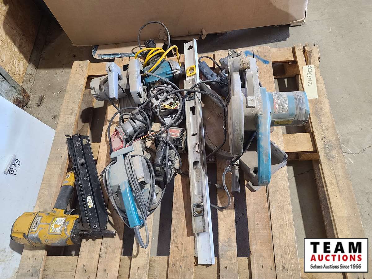 chopsaw, (2) skill saws, (2) sanders, levels, (2) drills, nail gun & generator