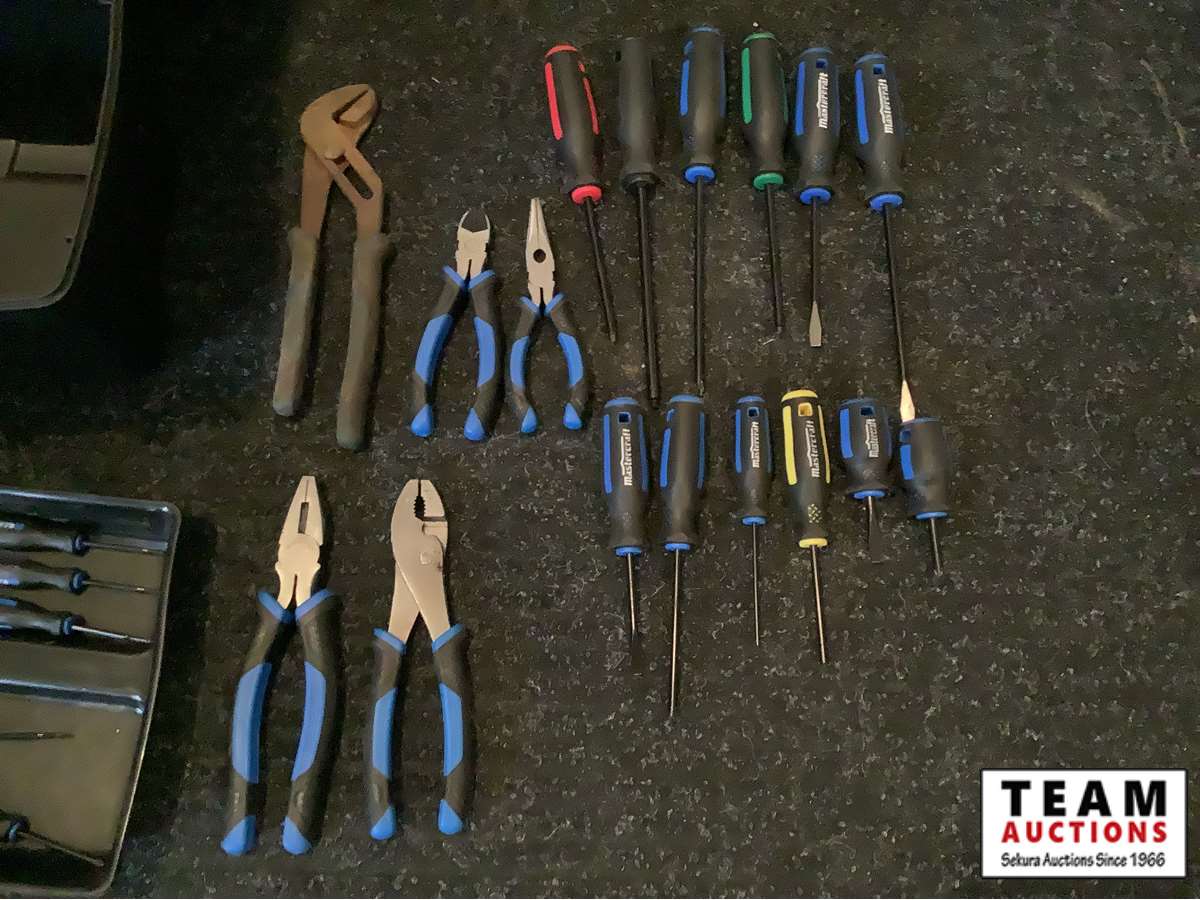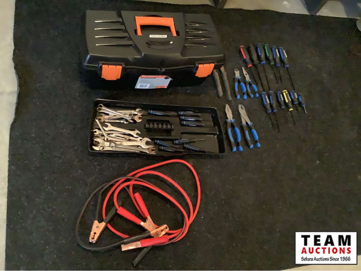 1258 Tool Box, Screwdrivers, Wrenches, Plyers & Booster Cables