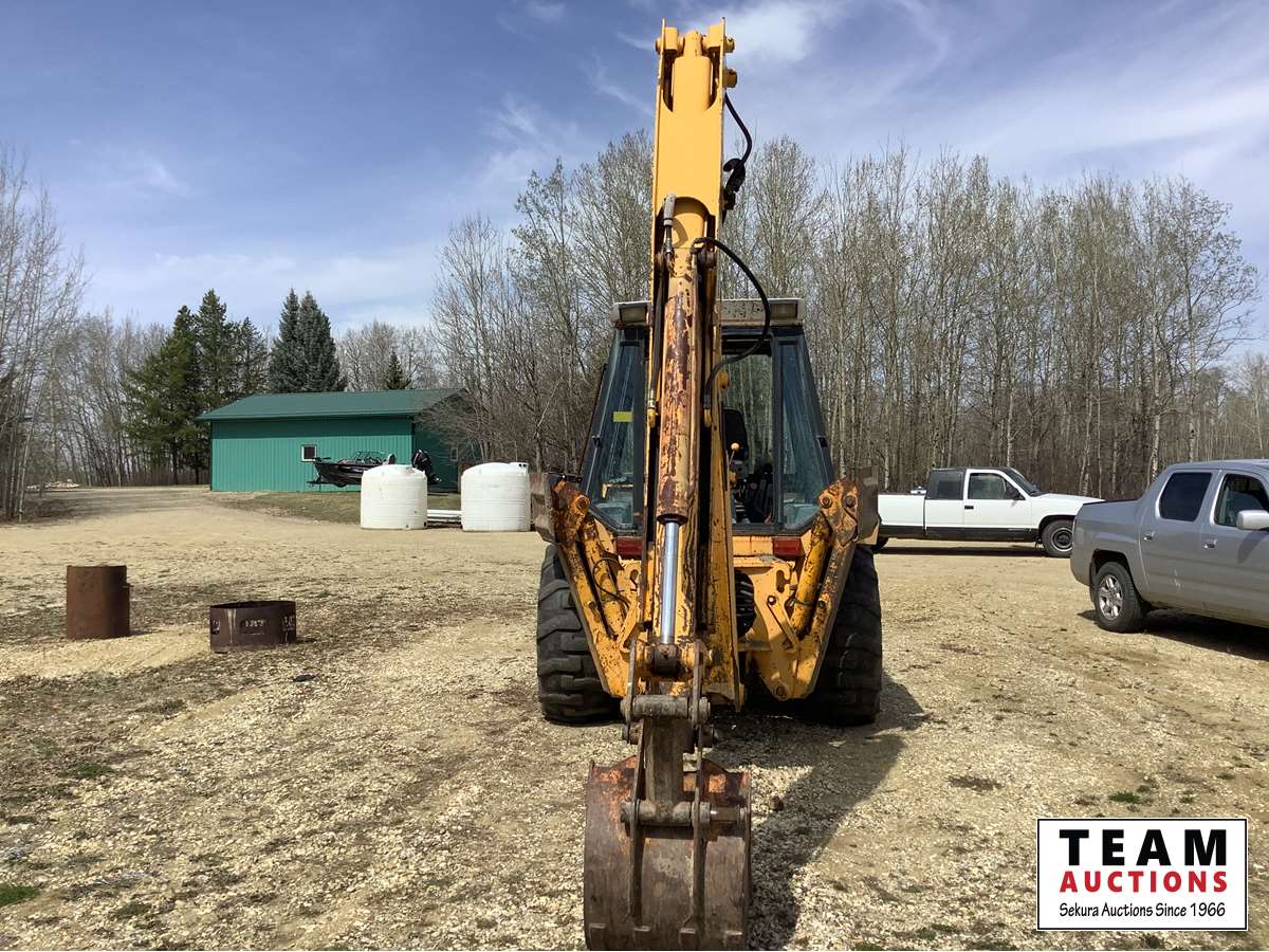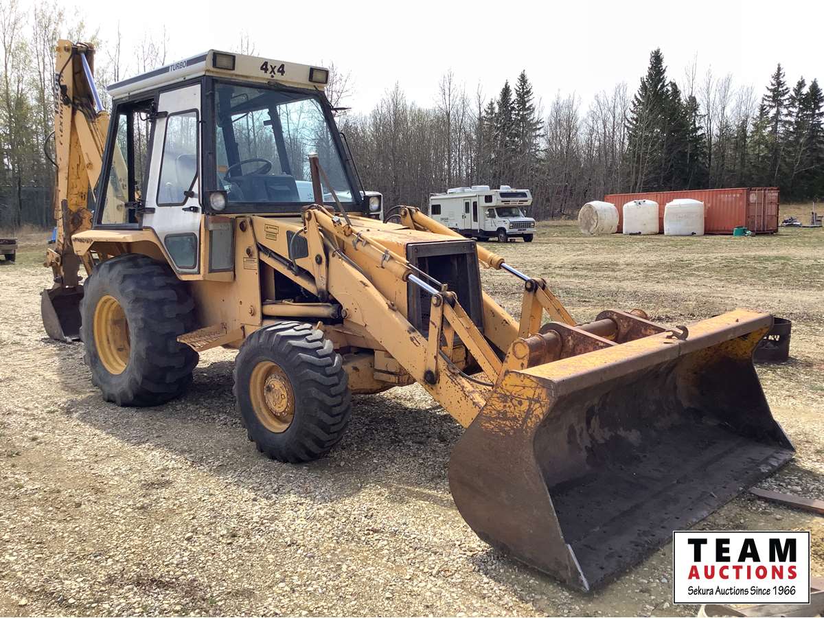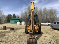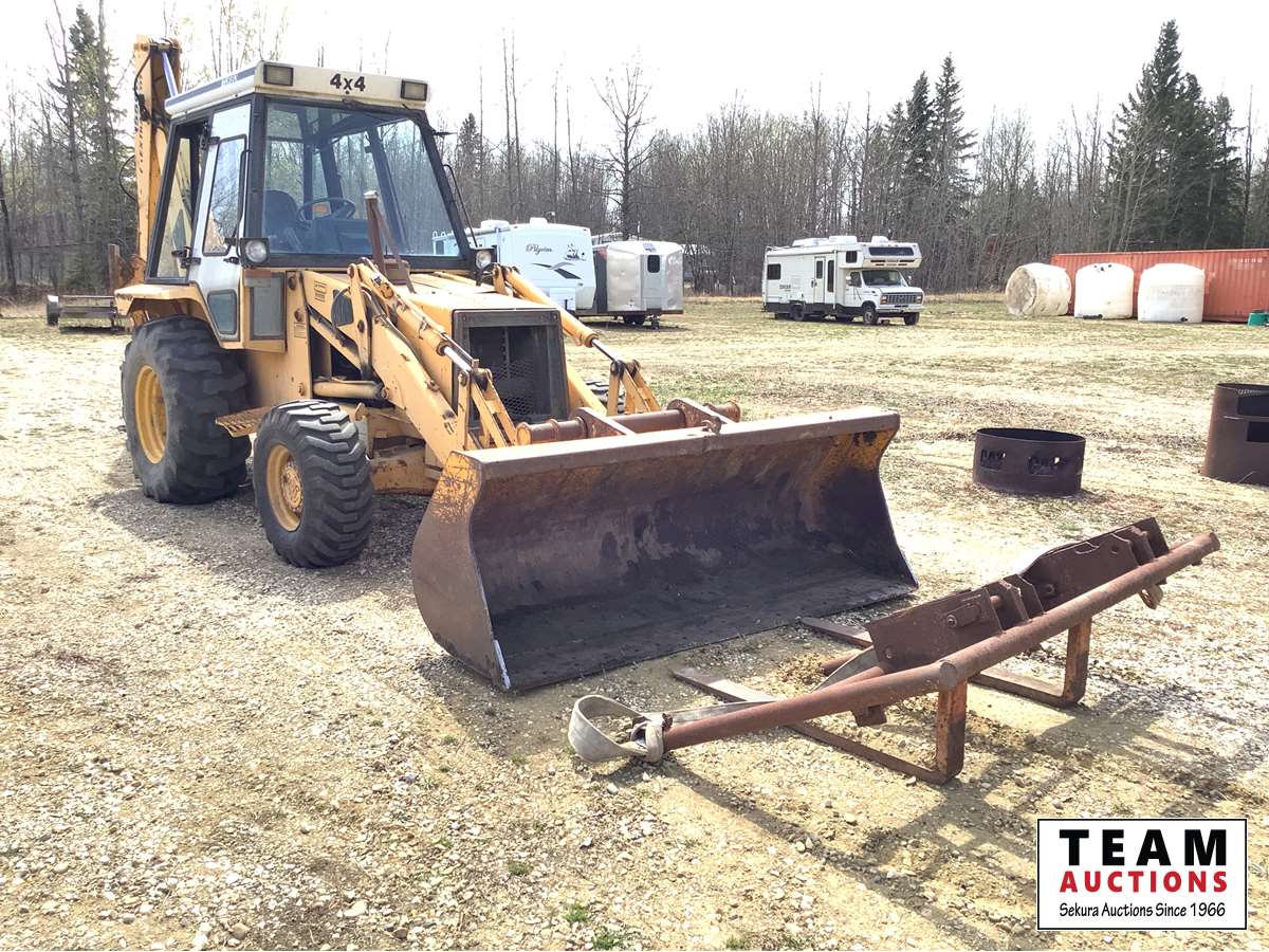 has extend-a-hoe, loader has quick attach bucket, no cab door, starts and drives, hours are unknown