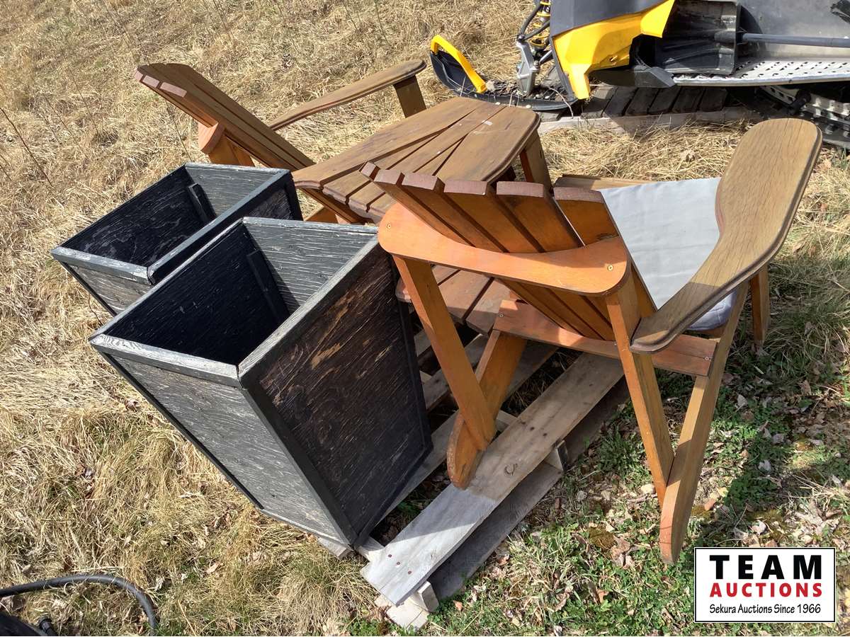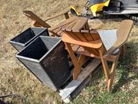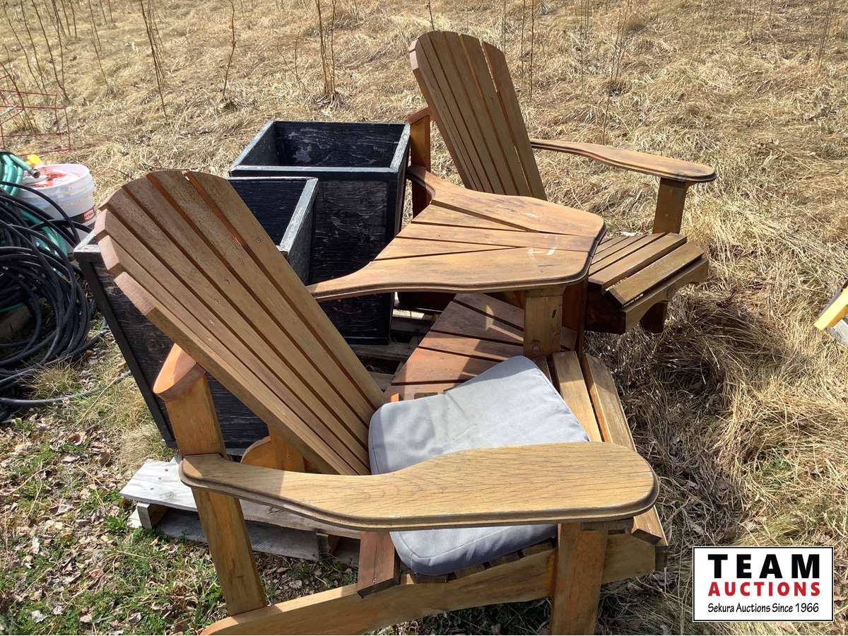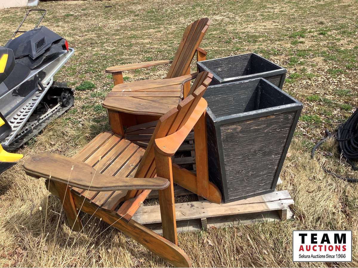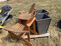 1894 Outdoor Wooden Double Chair & (2) Planters