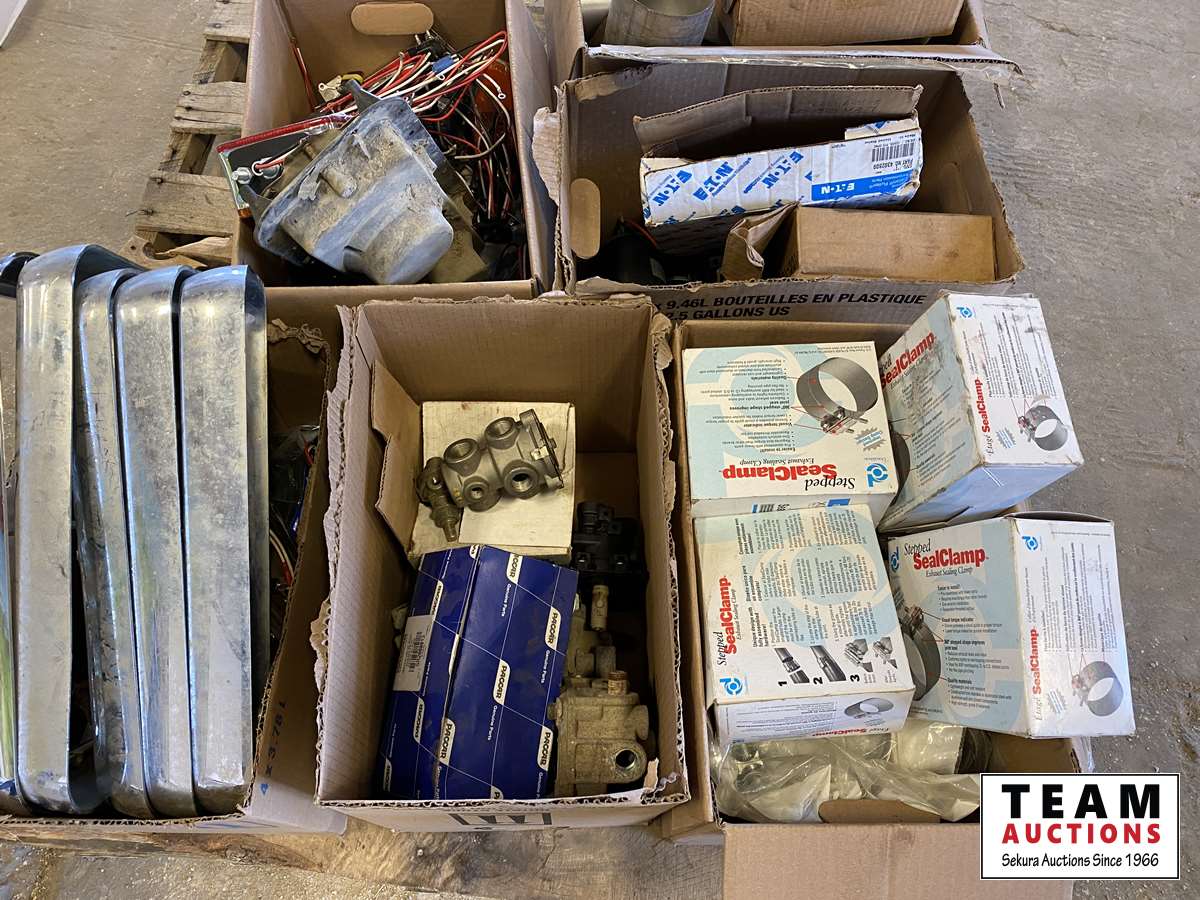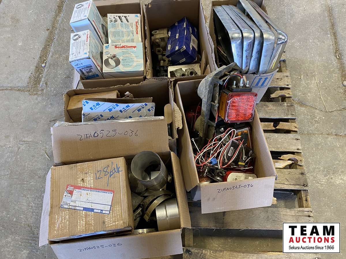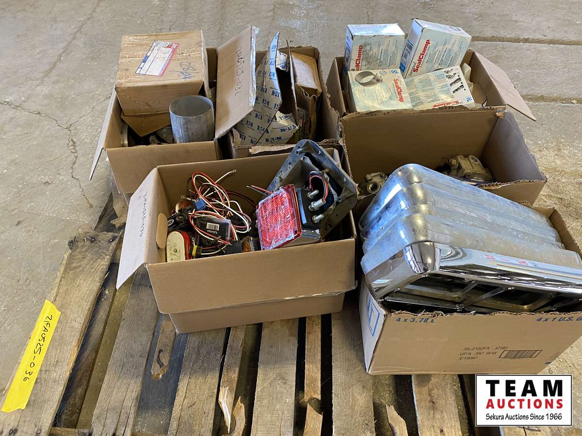 exhaust seal clamps, light guards, misc. of trailer lights, hose clamps, misc. truck parts, etc.