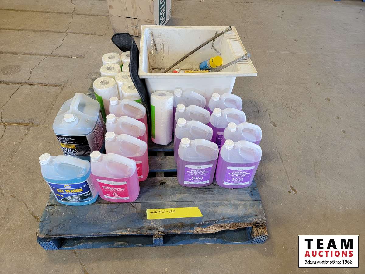 washer fluid, washer basin, paper towels, etc.