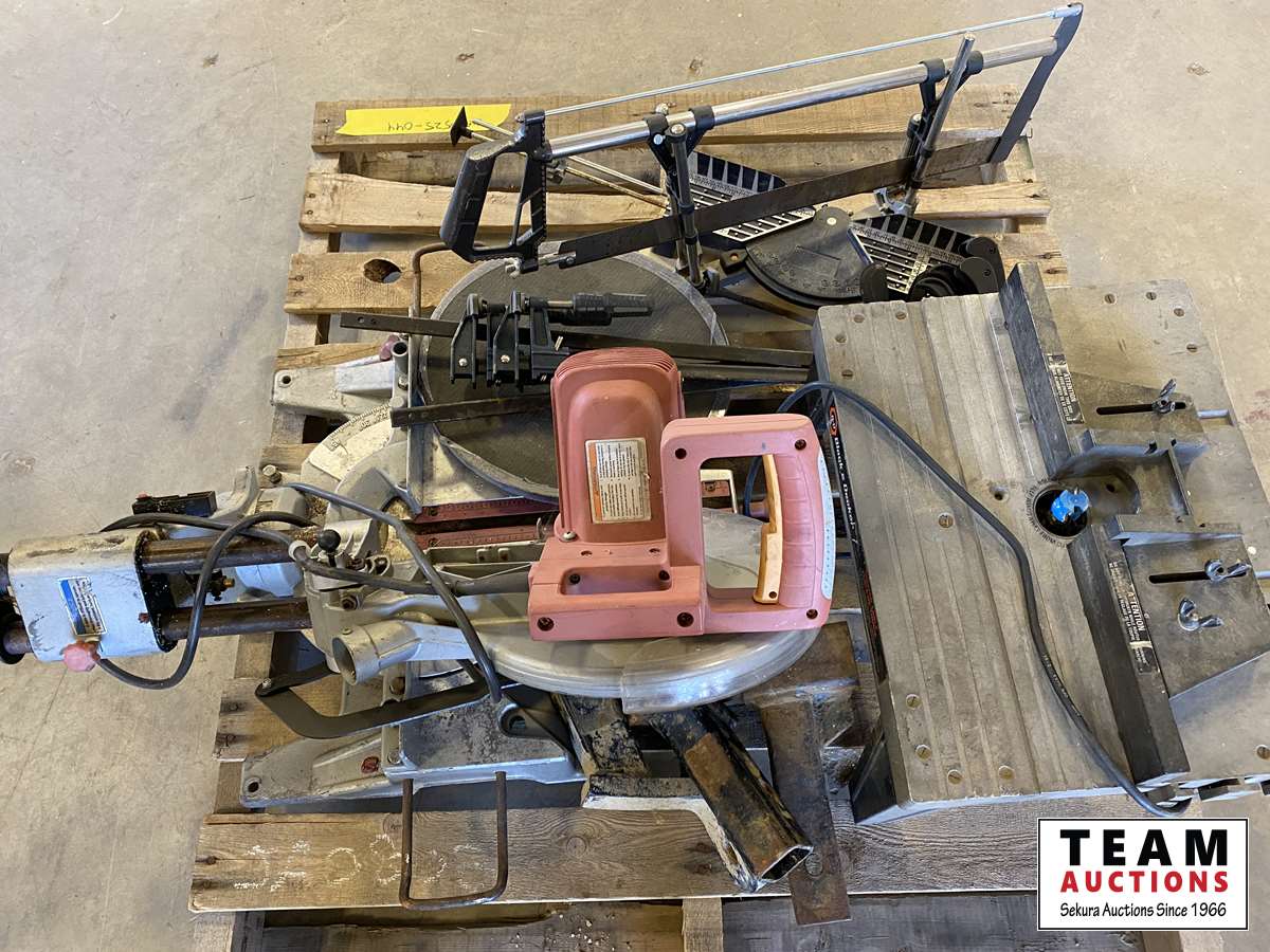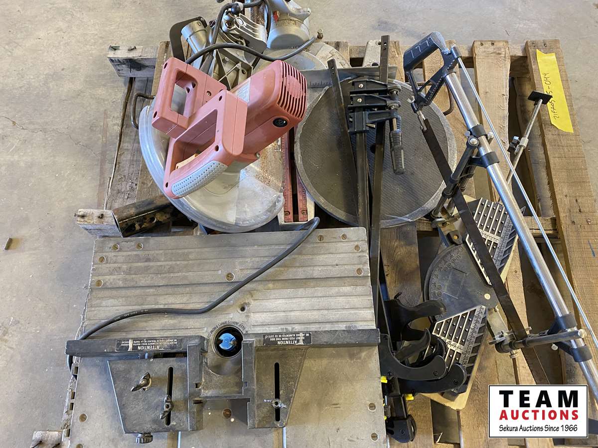 miter saw, clamps, routing table, hand miter saw etc.