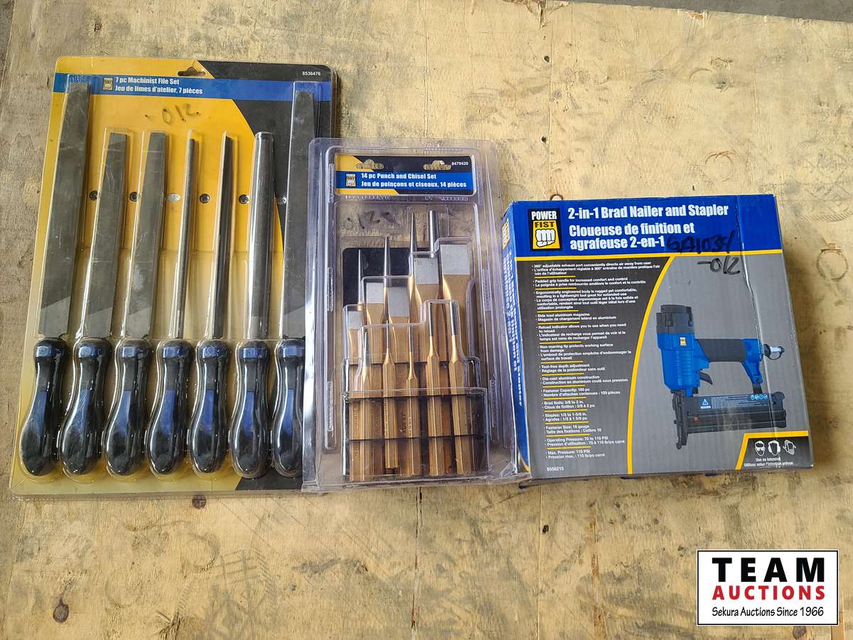 1783 2-in-1 Powerfist Brad Nailer/Stapler, 14Pc Chisel Set, 7Pc File Set
