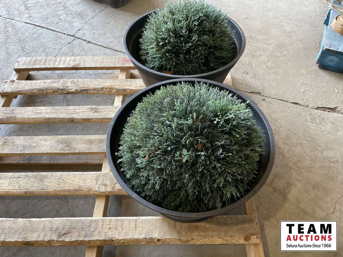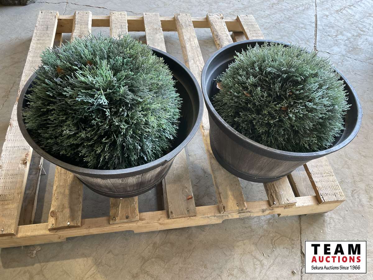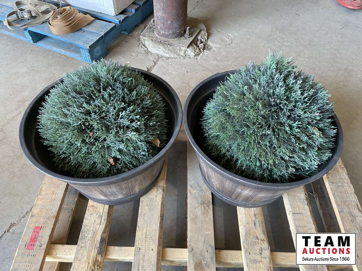 1553 (2) Round Plant Barrels & Plants