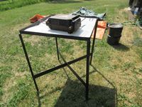 1882 30 Inch X 30 Inch Poly Top Meat Cutting Table & Portable Hibachi
