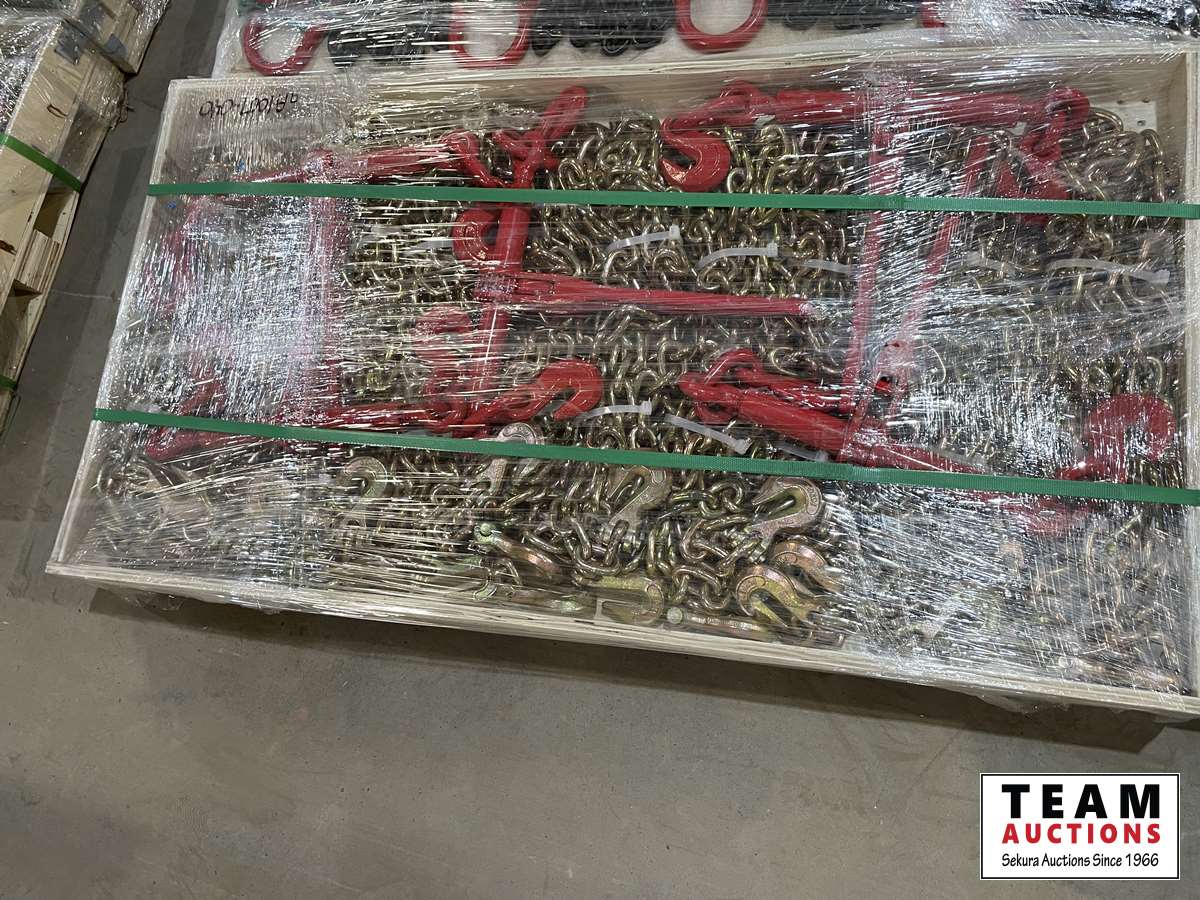 2150 5400 Lb Ratchet Binders & (10) G70-3/8 Inch Transport Chains (Unused)