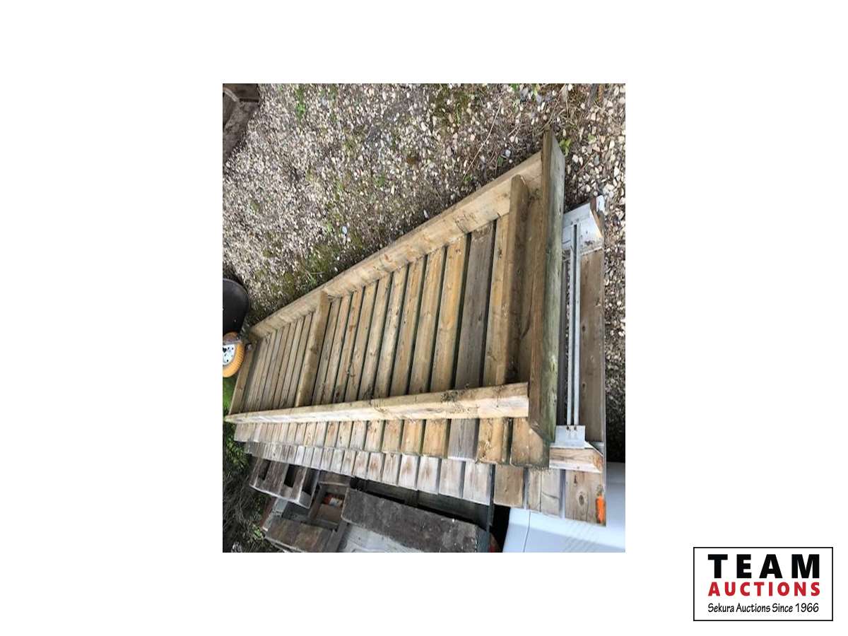(1) 13 Ft & (1) 12 Ft long dock section by 36 In. Wide of 2 x 6, (7) 8 Ft long dock sections by 36 In. Wide of 2 x 6, (3) 2 Ft long dock sections by 36 In. Wide of 2 x 6, (4) 20 Ft long sections of aluminum cable tray, (15) 24" wide by 48" high dock stands with (18) 3 Ft height adjustable poles, (6) 50 gallon blue plastic drums